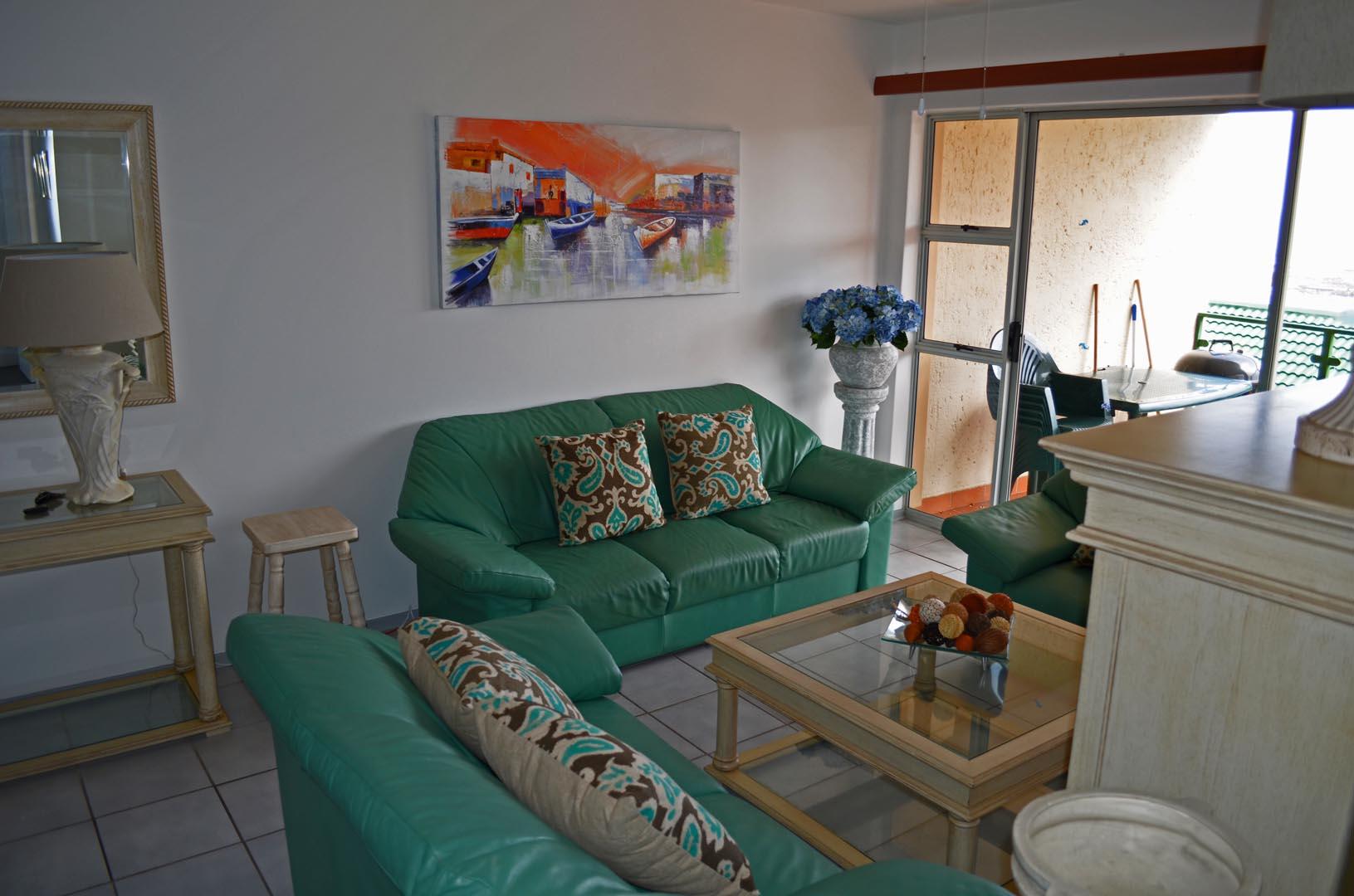 Ramsgate Palms 64 is located on the first floor of one of the best maintained and secured complexes in Ramsgate, and has direct access to the Ramsgate Blue Flag Beach which is 110m walk from the unit to the beach. The apartment is well-equipped for self-catering and also has a sea and breakers view from the balcony and main bedroom. The apartment comprises an open-plan lounge and kitchen area, two bedrooms and two bathrooms. One of the bathrooms is an en suite with a shower and the second bathroom has a bath. The main bedroom has a queen-size bed while the second bedroom has two si