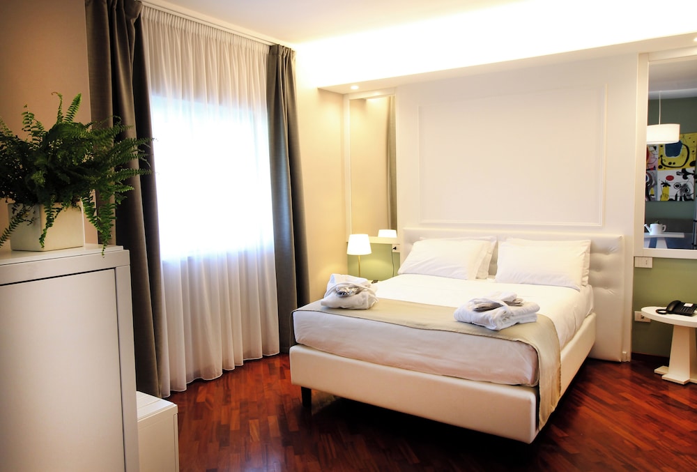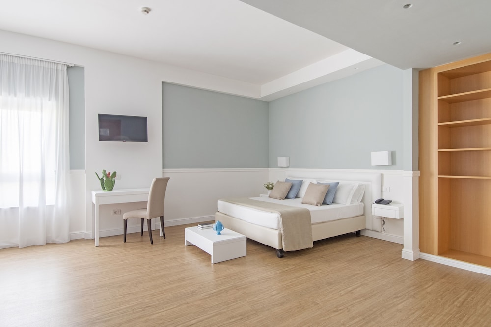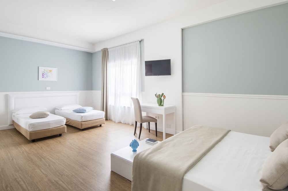 The hotel is only 2 km from the town of Manfredonia, in the province of Foggia, gateway to the Gargano, one of the most striking areas of Puglia. Guests will find restaurants, bars, clubs and links to the public transport network in the centre of Manfredonia. The hotel lies only 3 km from the sea, on the state road to San Giovanni Rotondo. There are over 130 km of beaches, coves, marine caves, cliffs and stacks plus remarkable archaeological ruins that are cited as a must-see in international tourist guides.This spa and conference hotel offers accommodation in a relaxing atmosphere and elegant and timeless style. It is ideal for business travellers and holidaymakers alike. All the interiors have been well thought out in terms of architecture and the furnishings are sober and elegant. The hotel offers 60,000 m², and comprises a total of 100 rooms and suites, located on 2 floors and served by 2 lifts, with panoramic balconies facing the sea and the Gargano Promontory. There are also 4 meeting rooms with a seating capacity of 20 to 350, for meetings, banquets and cocktail parties, at guests' disposal, as well as the Dame à la carte restaurant, a Congress Centre with 250 seats offering basic technical equipment, a simultaneous translation facility, a business centre and ample parking. Further facilities on offer to guests at this air-conditioned establishment include a lobby area with a 24-hour reception and 24-hour check-in/check out service, a hotel safe, a cafe, a newspaper stand, a hairdressing salon, a bar, a games room, a TV lounge, 2 restaurants and WLAN/Internet access (charges apply). For an additional fee guests may also take advantage of the room and laundry services and there is parking available for those arriving by car. Younger guests will enjoy the children's playground.