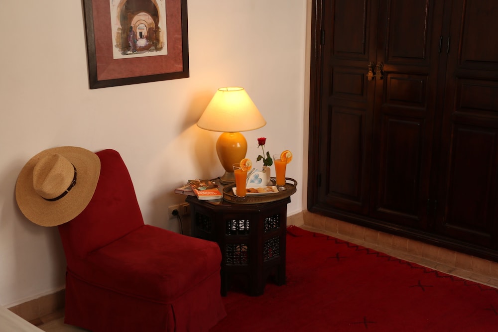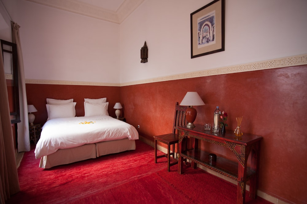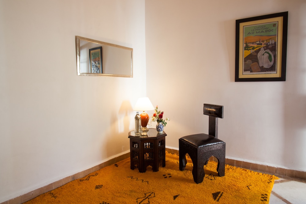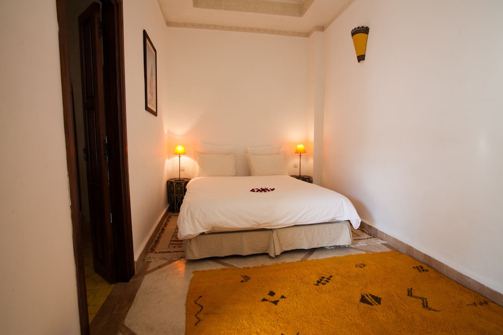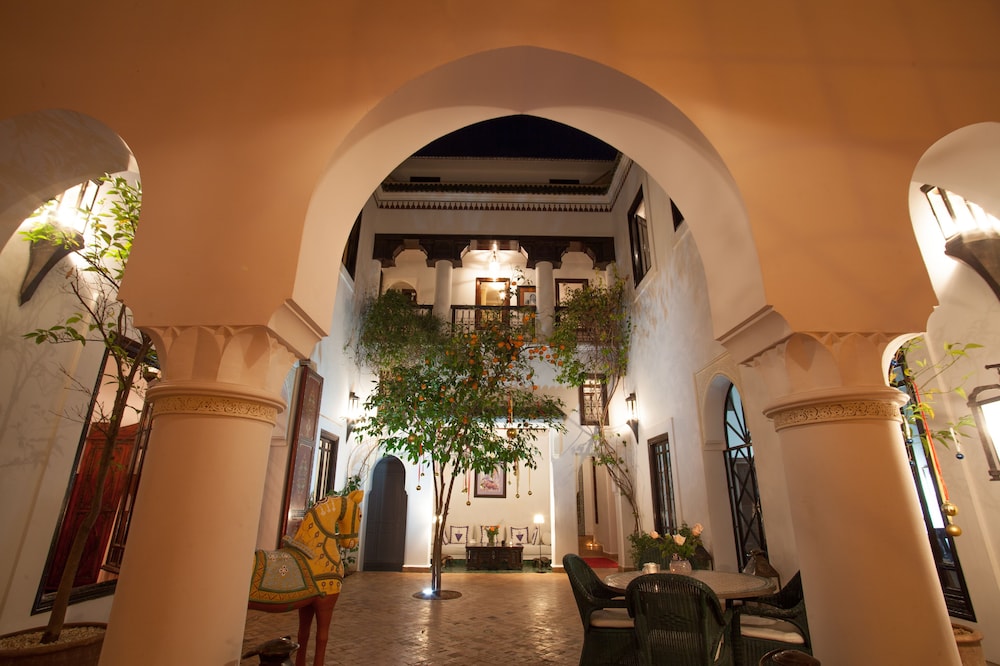 Situated at the heart of the Medina in Marrakech, the riad enjoys a privileged location that makes discovering the city easy and fun. Only 10 minutes on foot separate the hotel from some of the most renowned sites in Marrakech, such as the grand square Jamaa el Fna, which is just 200 m away.The riad is an oasis of peacefulness and comfort which guests will really enjoy after the bustle of life in the heart of the city. The riad has a central patio and 9 en suite bedrooms.The bedrooms are decorated in cool and crisp neutral colours with a splash of colour in each, traditional alcoves and tadelakt en suite bathrooms. The rooms come with mint tea, fresh fruit and Moroccan pastries on arrival.The riad serves Moroccan and international dishes. Guests are served breakfast and water in the room on arrival.Guests can follow Rue Fatima Zohra until they reach the Dar Marjana restaurant. Then turn into the first alleyway on the left and look out for Derb El Halfaoui on the right.