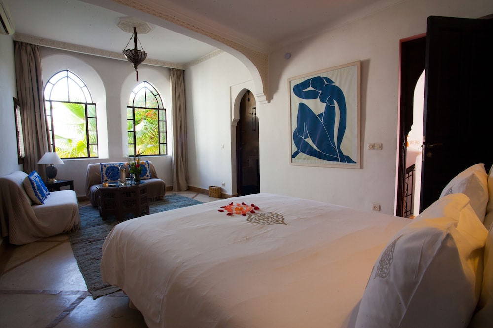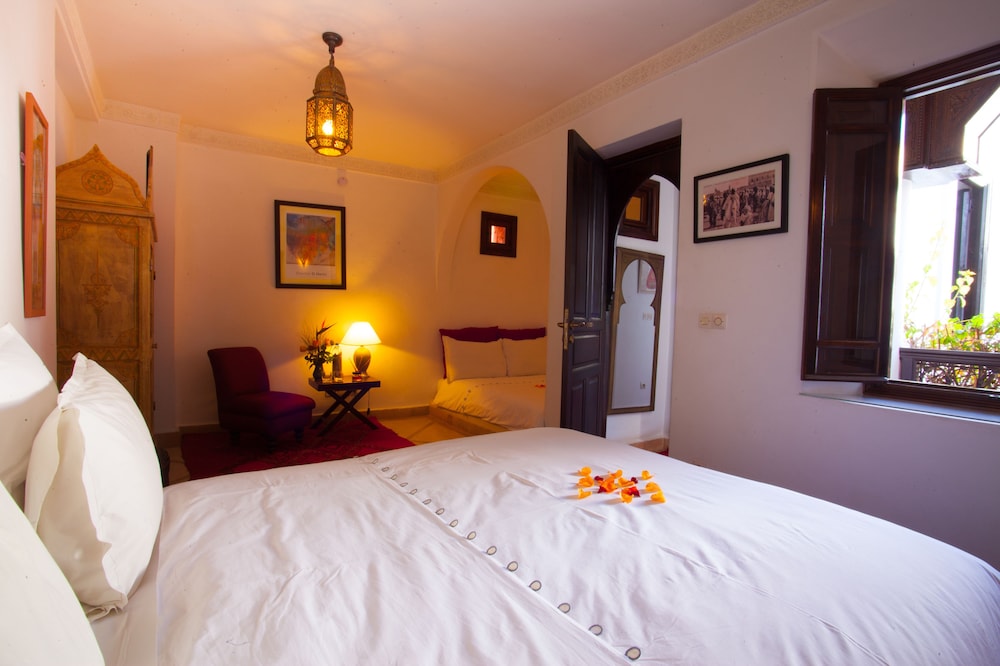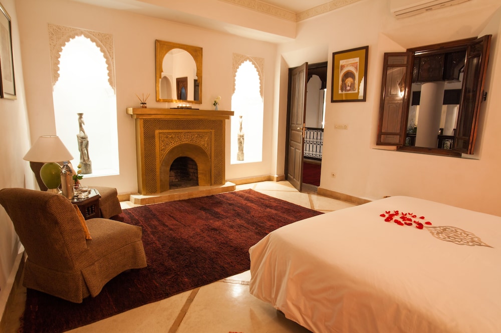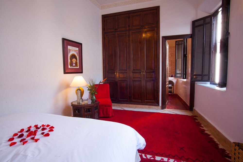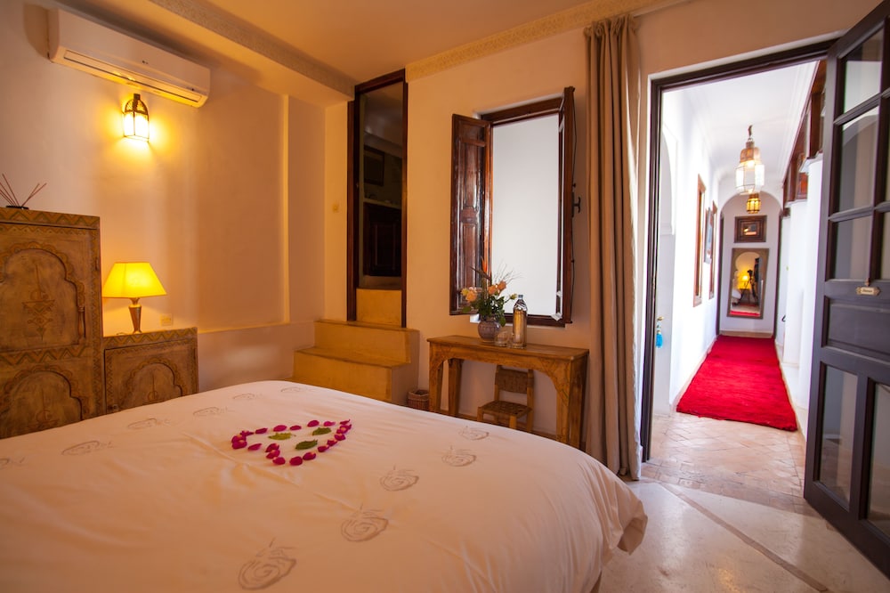 Situated at the heart of the Medina in Marrakech, the riad enjoys a privileged location that makes discovering the city easy and fun. Only 10 minutes on foot separate the hotel from some of the most renowned sites in Marrakech, such as the grand square Jamaa el Fna, which is just 200 m away.The riad is an oasis of peacefulness and comfort which guests will really enjoy after the bustle of life in the heart of the city. The riad has a central patio and 9 en suite bedrooms.The bedrooms are decorated in cool and crisp neutral colours with a splash of colour in each, traditional alcoves and tadelakt en suite bathrooms. The rooms come with mint tea, fresh fruit and Moroccan pastries on arrival.The riad serves Moroccan and international dishes. Guests are served breakfast and water in the room on arrival.Guests can follow Rue Fatima Zohra until they reach the Dar Marjana restaurant. Then turn into the first alleyway on the left and look out for Derb El Halfaoui on the right.