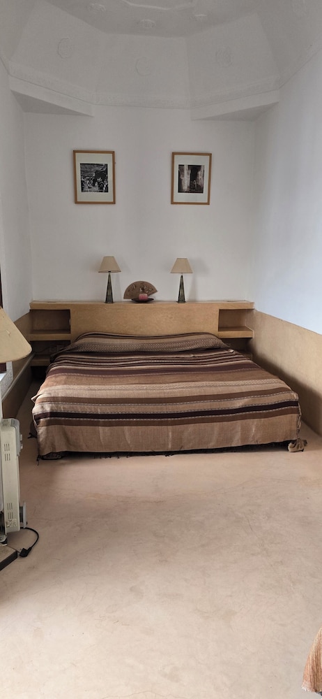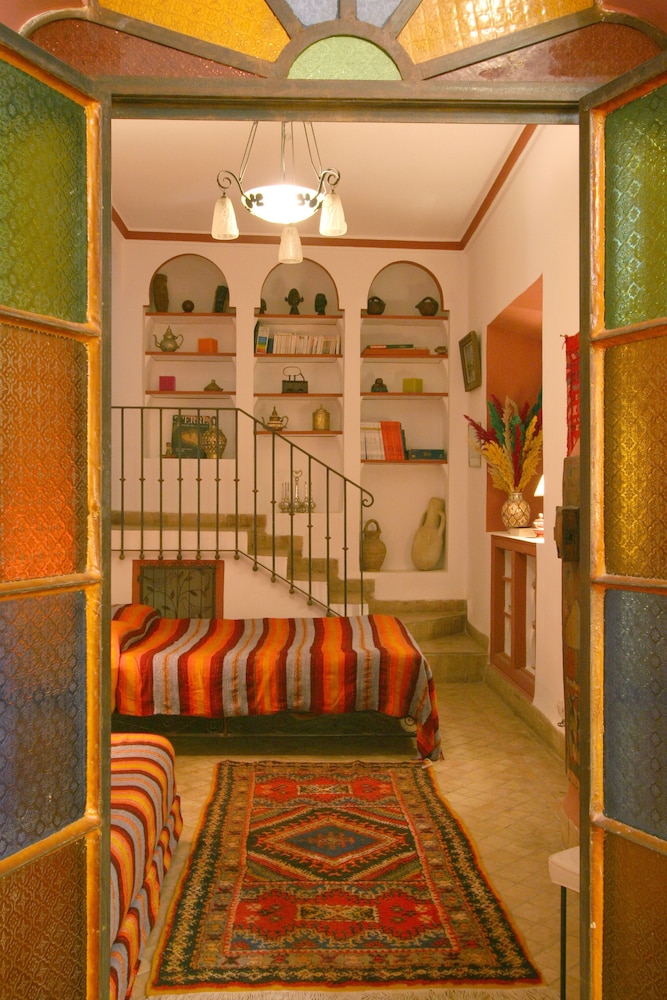 The Riad Karmela is located right in the heart of the old Medina, only 2 minutes walk from the entrance of the Souks (Market), and also 2 minutes from the Museum of Marrakech and the Medersa Ben Youssef. The famous and magic Place Djemma el Fnaa is only 8 minutes walk. You will appreciate the calm and the elegance of that large Riad where the 19 bedrooms and junior suites are located around 3 different courtyards. You will be able to enjoy a summer plunge pool and several lounge areas both in the courtyards and also on the large terraces. You will also enjoy the view of the Atlas Mountains or all round the Riad, the roofs of the old Medina of Marrakech. The hotel also has sauna, massage rooms, hammam, bar, restaurant, day trips, car rental, Free Wi-Fi. For security reasons, the hotel does not admit children under 4 years old. If you come before 10h (local time), the hotel offers you a breakfast with Moroccan pastries, late check-out (if available) and a bottle of water in your room.