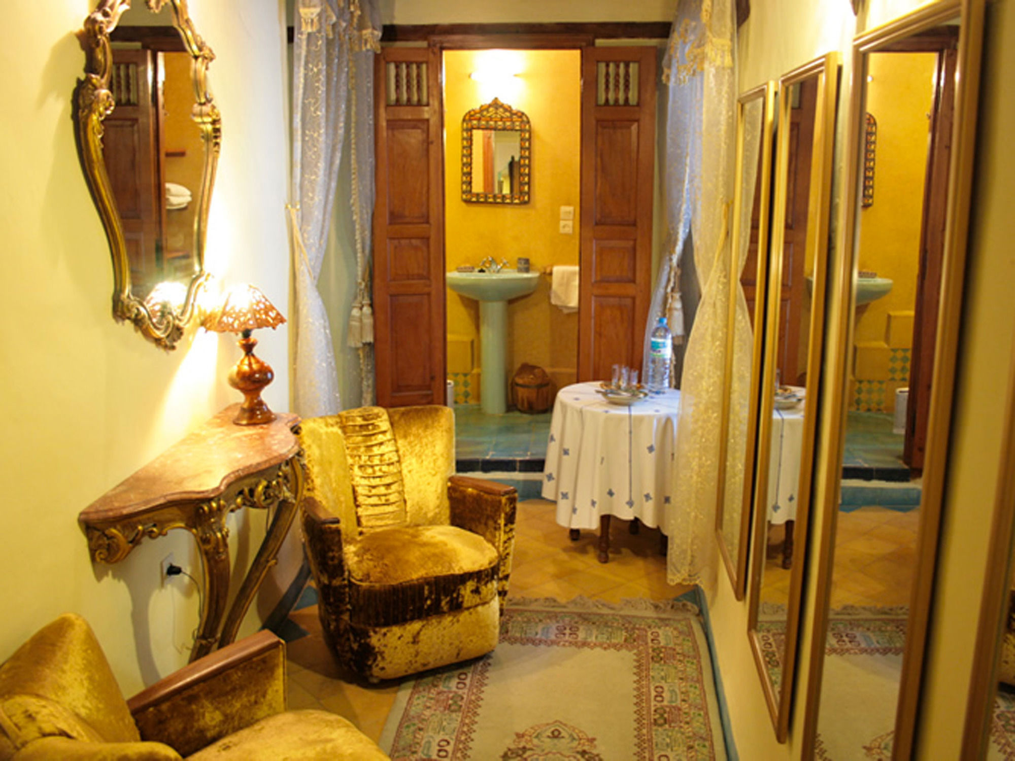 Located in Fes (Fes El Bali), Riad Louna is minutes from Medersa Bou-Inania and Water Clock. This 4-star riad is within close proximity of Der Batha Museum and Blue Gate.Rooms Make yourself at home in one of the 8 air-conditioned guestrooms. Your room comes with a pillowtop bed. Complimentary wireless Internet access is available to keep you connected. Private bathrooms with showers feature complimentary toiletries and hair dryers.Amenities Take advantage of recreation opportunities such as a health club or take in the view from a rooftop terrace and a garden. Additional amenities at this riad include complimentary wireless Internet access, concierge services, and babysitting/childcare (surcharge). Getting to nearby attractions is a breeze with the area shuttle (surcharge).Dining Enjoy a meal at one of the riad's dining establishments, which include 3 restaurants and a coffee shop/café. From your room, you can also access room service (during limited hours). Quench your thirst with your favorite drink at a bar/lounge. A complimentary breakfast is included.Business, Other Amenities Featured amenities include dry cleaning/laundry services, a 24-hour front desk, and multilingual staff. A roundtrip airport shuttle is provided for a surcharge (available 24 hours), and self parking (subject to charges) is available onsite.