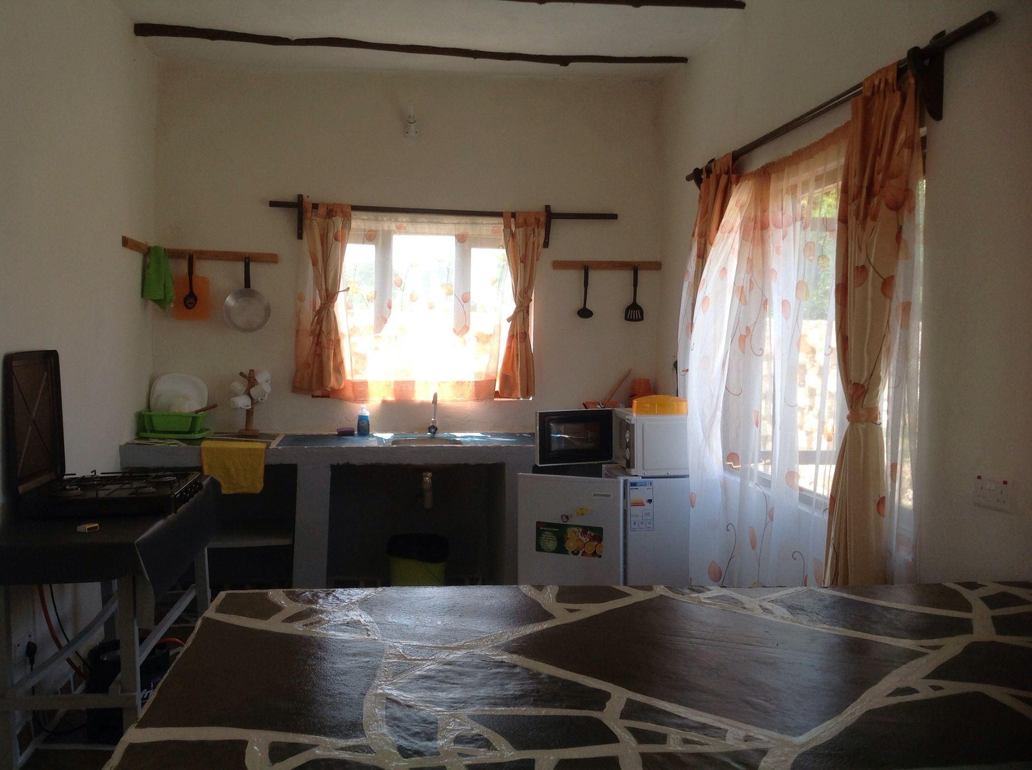 Ritam Getaways is located off Likoni-Ukunda Road and offers guests a middle-range budget, accommodation that is ideal for family holidays. This establishment is close to Kwale Town and the nearest shopping centre is Ukunda Town and Diani Shopping Centre, which is approximately 8 km away. Each unit is fully furnished and comprise of one bedroom with a queen-size bed, one bathroom and an open-plan kitchen and lounge. The unit is intended for two persons, however there are two sofa-beds in the lounge which can sleep an additional two people. There is an LCD TV, crockery and cutlery fo