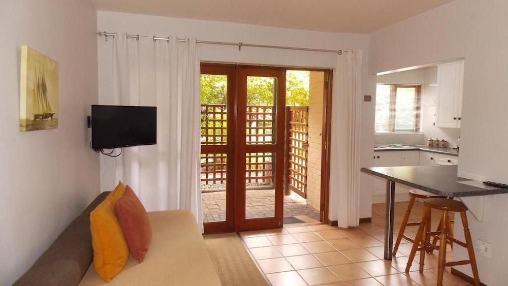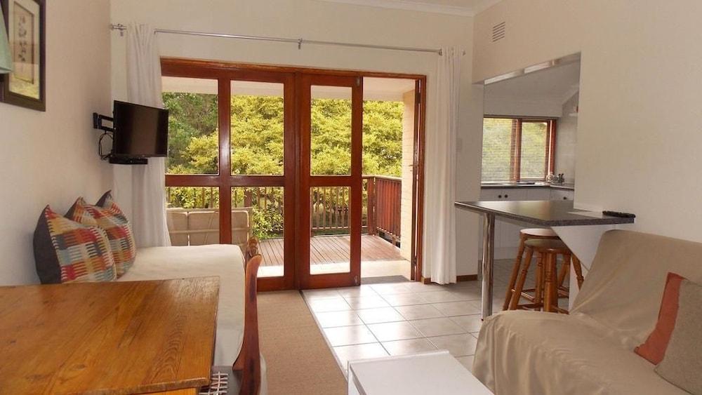 Rivertide Lodge is the ideal centre for your Garden Route experience. Strategically positioned in the centre of the peaceful and up-market Leisure Isle and only 5 minutes walk to the lagoon beach. Rivertide is within a short distance of swimming beaches, fishing spots, boat slipways and lagoon promenades...and only a 4 minute drive from the spectacular Knysna Heads - gateway to the Indian Ocean!Relax in the supreme comfort of your own spacious apartment with wooden deck or cosy en-suite room.Room facilities include: heaters, fans, bar fridge, TV with DSTV, free Wi-Fi ,