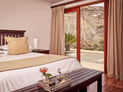 RiverWalk is situated in the tranquil village of Clarens, away from the hustle and bustle of the Square, but within walking distance of the major art galleries, restaurants and shops. We are situated in a cul-de-sac, which guarantees peace and unsurpassed tranquility with spectacular views of the mountains and wooded areas. Guinea fowl roam wild on the property and a little stream runs at the end of the perimeter, with willows and polplars to add the real Clarens touch.All rooms open onto a veranda from a private entrance, with luxurious bathrooms. We pride ourselves with the quality of our f