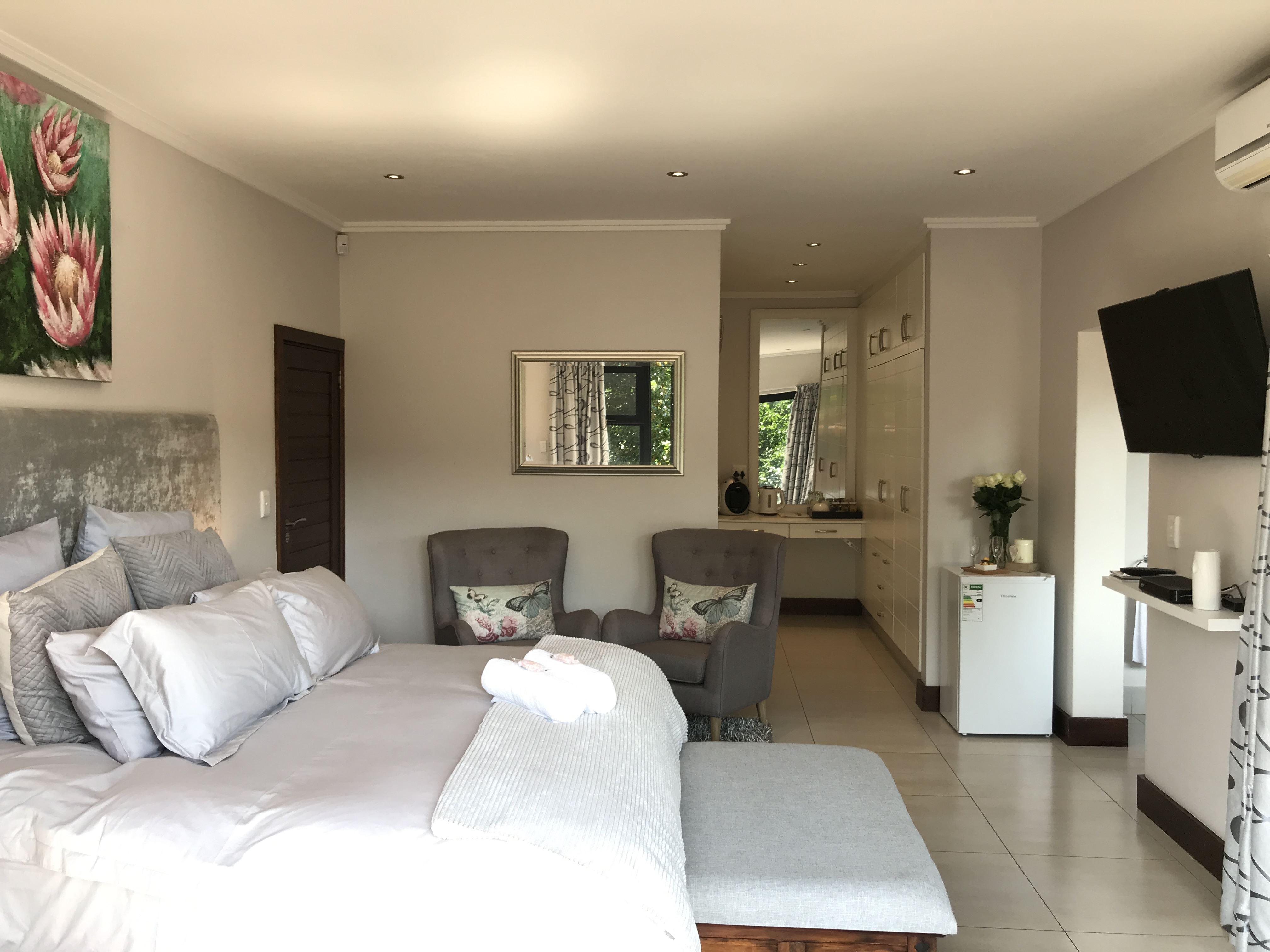 Welcome to Rocabella.We have three private rooms on offer. All three rooms have their own private access.There is a Luxury Suite and two Luxury Rooms. A beautiful stand alone house on a 2,000 square meter plot overlooking an amazing dam. Its set in the natural coastal paradise of Simbithi Eco Estate, away from the hustle & bustle of city life. Complimentary Coffee, Tea and snacks are available in the room to enjoy.There is air-conditioning and 50"Ultra HD TV with the full Dstv package available to enjoy.There is workspace if you need to catch on work or send a few emails over the free wifi t