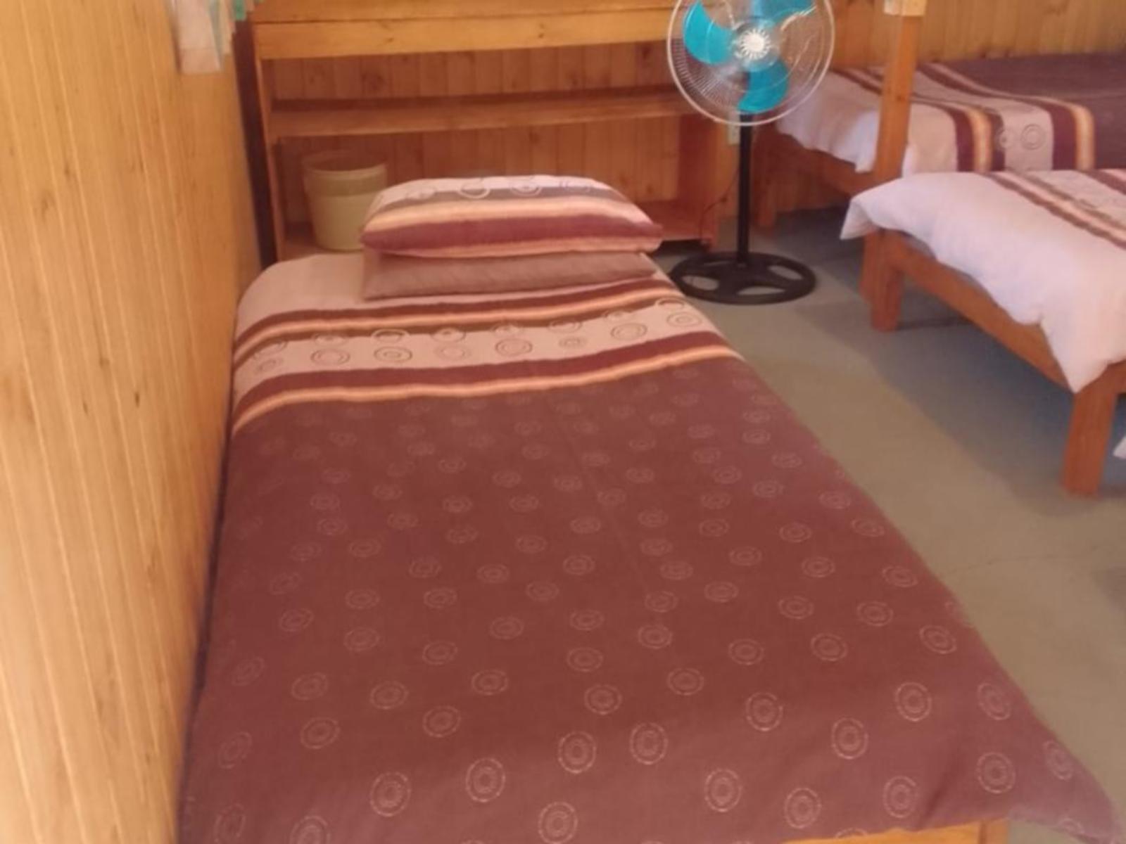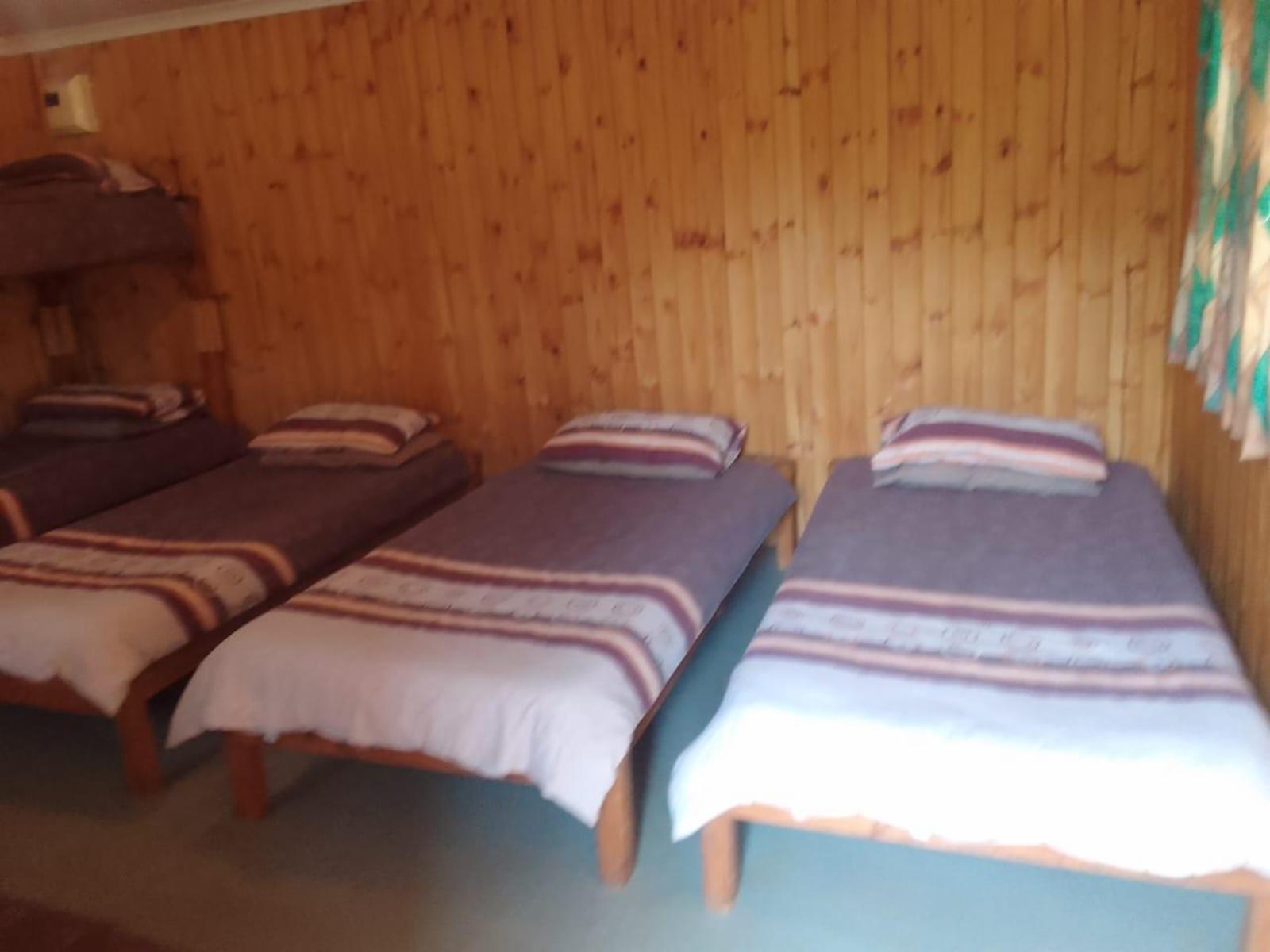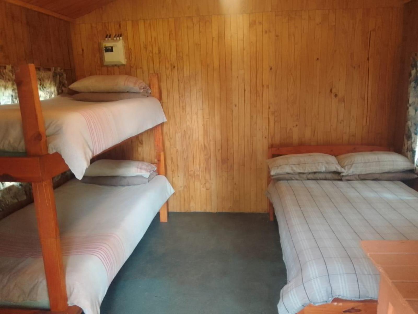 Accommodation is spread across a variety of cosy log cabins that sleep between 4 and 6 guests each. Some cabins share ablution facilities with others, while a few offer private bathrooms for added convenience. Cabins are comfortably furnished with combinations of double beds, single beds, and bunk beds. Select cabins include kitchenettes and patios with outdoor seating, offering a relaxed and rustic atmosphere.