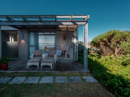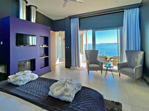 Situated on the Cape Whale Coast, Romans Villa is an ultra-luxury Boutique Guest House beachfront property within the gated Romansbaai Beach & Fynbos Estate, Gansbaai, Western Cape, South Africa. The Guest House comprises five double bedroom suites with luxury bedding and linen, each with its own spacious en-suite bathroom and private veranda. All suites have ocean views and are positioned for your ultimate privacy. Rates quoted are on a Per Room Per Night basis and include Breakfast and complimentary sundowners from 17h00 to 18h00. The living and dining area with Itali