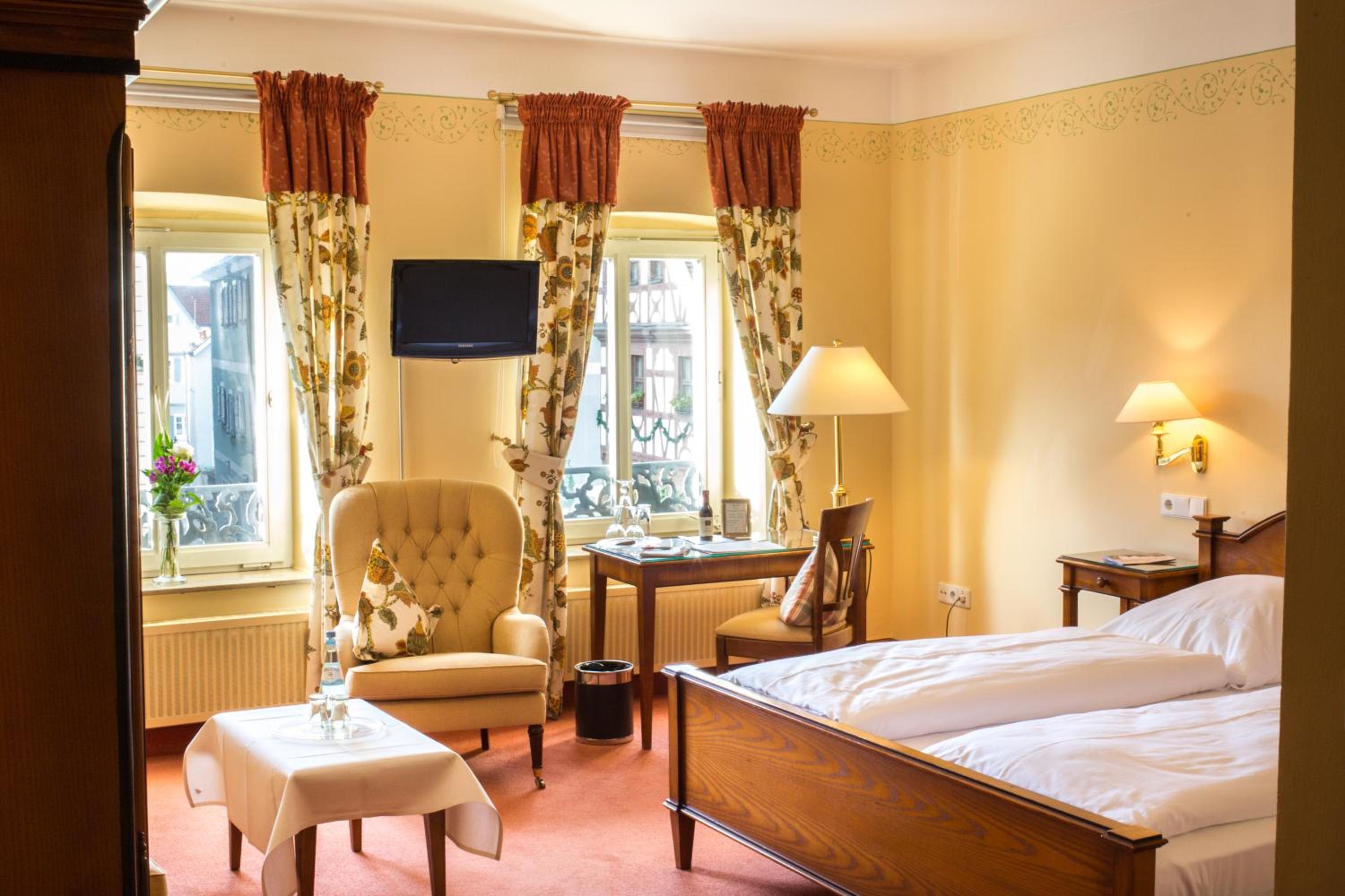 Occupying a 600-year-old building this hotel in the town of Feuchtwangen is located on Bavaria's Romantische Strasse (Romantic Road) and is close to the A6 and A7 motorways. The 4-star Romantik Hotel Greifen-Post offers tasteful cosy en suite rooms individually decorated following the styles of the past 400 years.Enjoy dinner in the restaurant where the chefs use regional products.Guests can easily spend a day around the hotel whether reading in the library or relaxing in the spa area with pool. The hotel also offers massages and Ayurveda.Alternatively spend the day exploring the surrounding region including the town of Rothenburg ob der Tauber or the surrounding forests and castles. The hotel staff are happy to help you plan your trips.