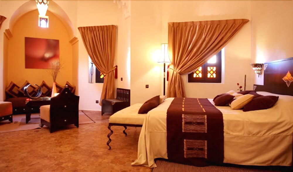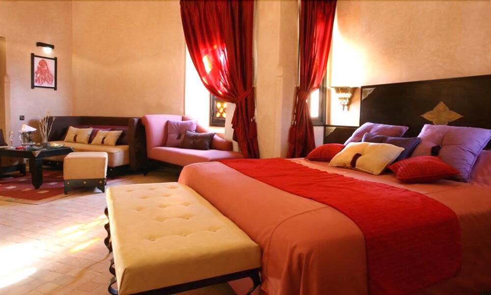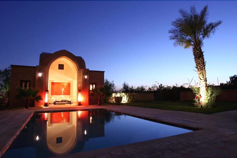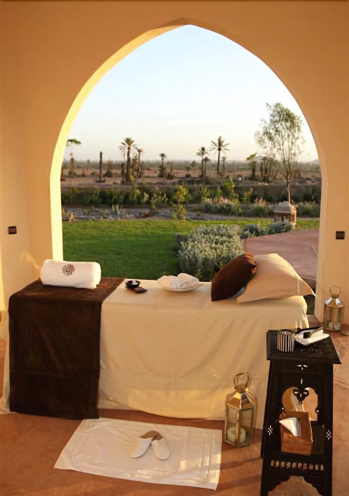 With a stay at Rose Garden Resort & Spa in Marrakech (Palm Groves), you'll be close to Marjane Hypermarket. This 5-star resort is within the vicinity of Palmeraie Golf and Museum of Islamic Art.Rooms Make yourself at home in one of the 52 air-conditioned rooms featuring minibars. Your room comes with a pillowtop bed. Complimentary wired and wireless Internet access keeps you connected, and cable programming provides entertainment. Private bathrooms with separate bathtubs and showers feature complimentary toiletries and hair dryers. Relax at the full-service spa, where you can enjoy massages and body treatments. If you're looking for recreational opportunities, you'll find an outdoor pool, a spa tub, and an outdoor tennis court. This resort also features complimentary wireless Internet access, supervised childcare/activities, and babysitting/childcare.Dining Quench your thirst with your favorite drink at a bar/lounge.Business, Other Amenities Featured amenities include a business center, limo/town car service, and express check-in. Event facilities at this resort consist of conference space and meeting rooms. Guests may use a roundtrip airport shuttle for a surcharge, and free self parking is available onsite.