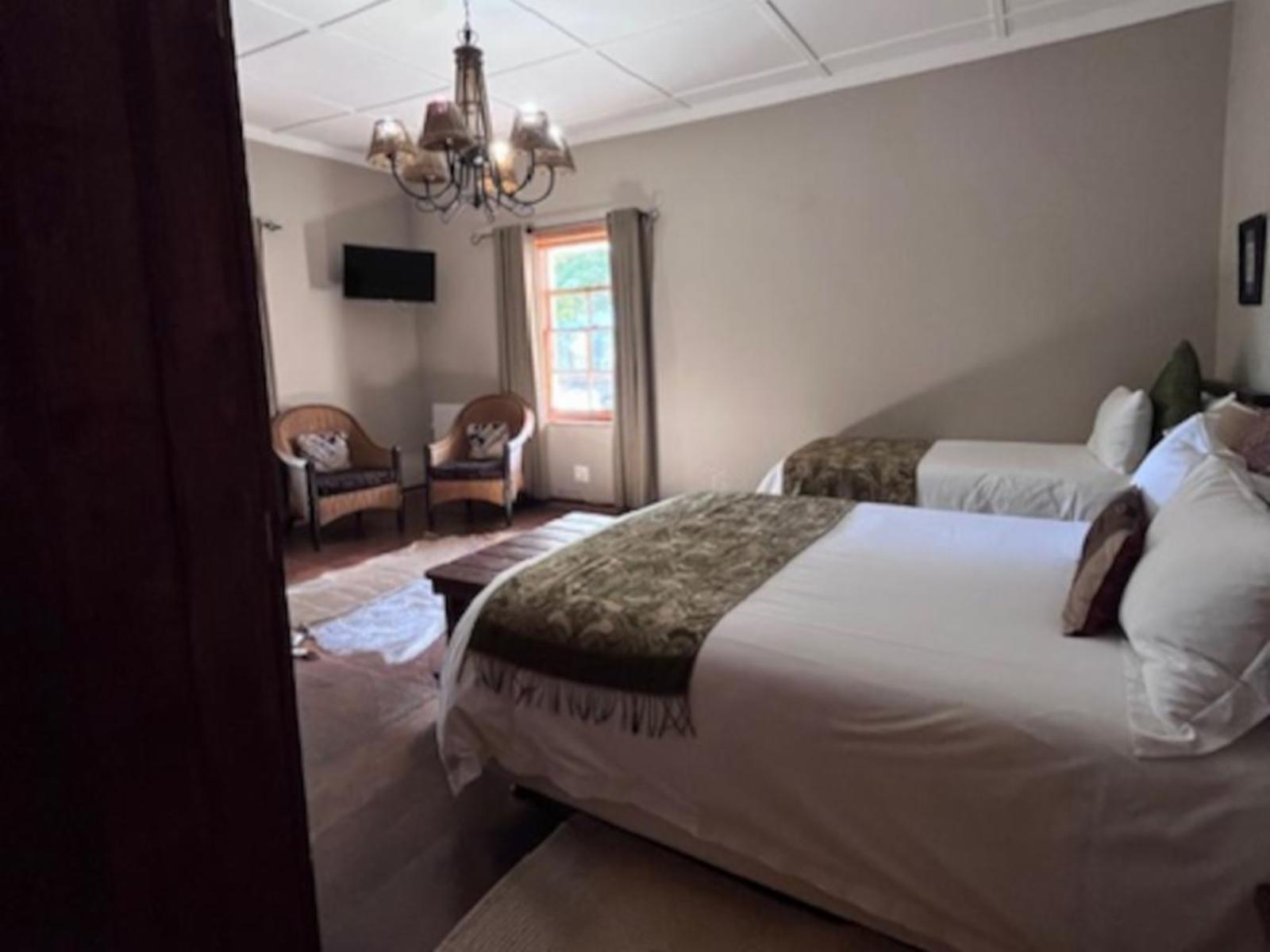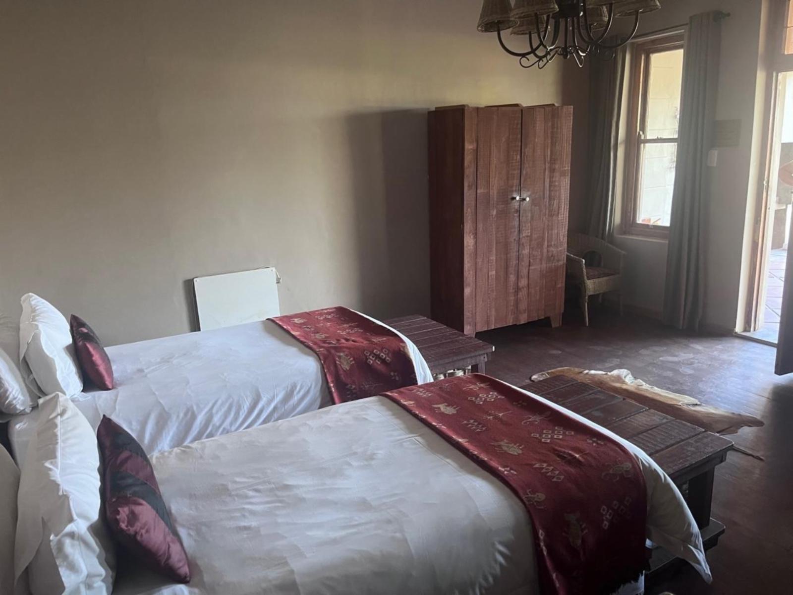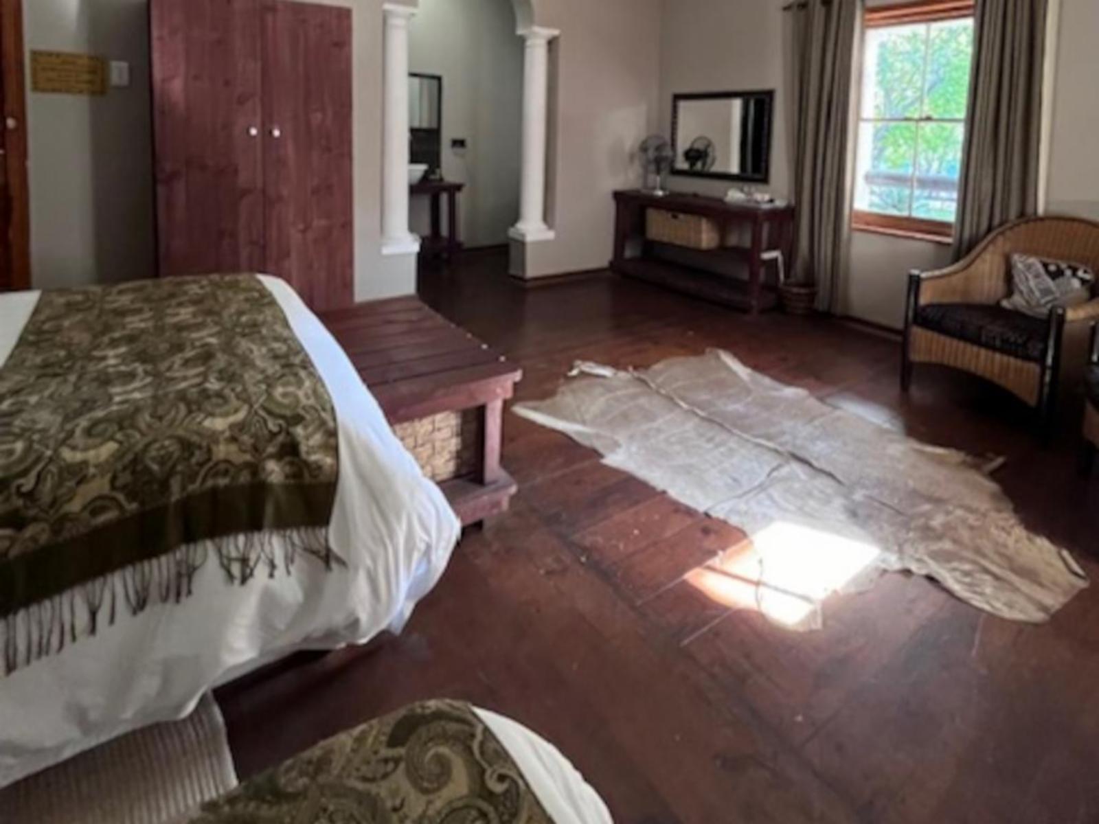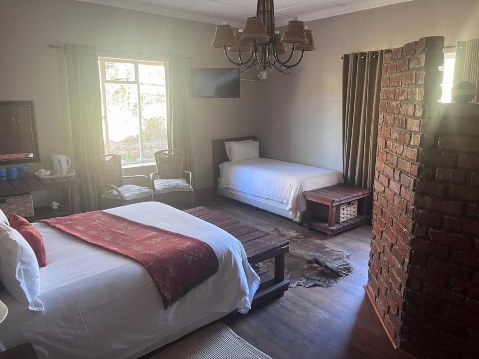 The Roydon Veld and Fur covers an area of 1200 hectares and is situated 6 km outside of Queenstown in the Eastern Cape, in the heart of the 1820 Settlers’ Frontier. Roydon incorporates a contrasting mix of bushveld, grassland and highveld mountains that descend into a valley, forming an amphitheatre at the slopes of the enclosing mountain range. Along with the lush gardens, it's the perfect setting for your next holiday.Stay options include the family home, various chalets and rooms inside the lodge. The Family Home is a double-storey 5-bedroom home with two double beds and six twi