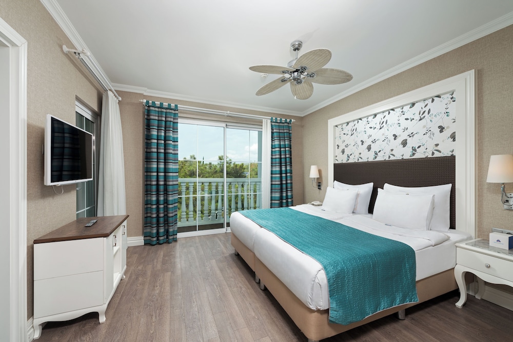 This complex boasts a majestic setting in Alanya. The resort is set against a small cove, on Turkey's Mediterranean Coast, in the district of Avsallar. The hotel lies within easy access of the area's must-see attractions, including Alanya Castle and Damlatas Cave. Links to the public transport network can be found nearby. The guest rooms are beautifully designed, offering a relaxing setting in which to escape the rest of the world. Guests are invited to avail of the many exemplary facilities and services that the complex has to offer. The resort comprises a choice of eateries and entertainment venues, as well as a spa and wellness centre. The resort also boasts a private beach and many sports facilities. The little ones will appreciate the resort's kids club.