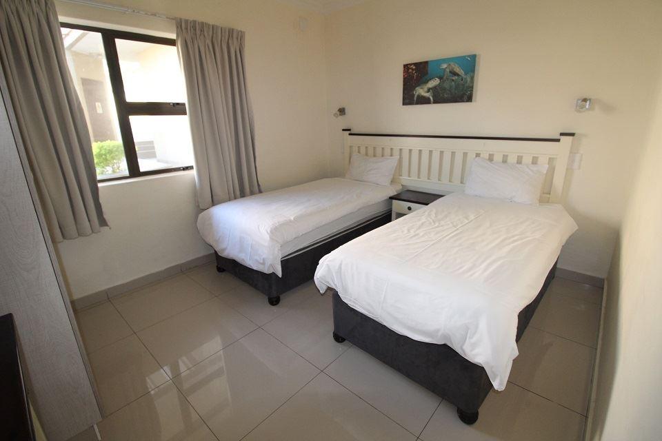 Saints View Resort ia a self-catering holiday resort , with a front-facing sea view, apartment located in the heart of the Hibiscus Coast, KwaZulu-Natal. Saints View is within walking distance from the popular Uvongo Main Beach, with its picturesque lagoon. Most of the units offer beautiful sea views.Saints View units can accommodate up to 6 adults and 2 children and comprises 3 bedrooms, 2 bathrooms, and an open-plan kitchen, dining and living area. The main bedroom bedrooms contain a double bed and the second and third bedrooms contain 2 single beds each. There is a sleeper couc