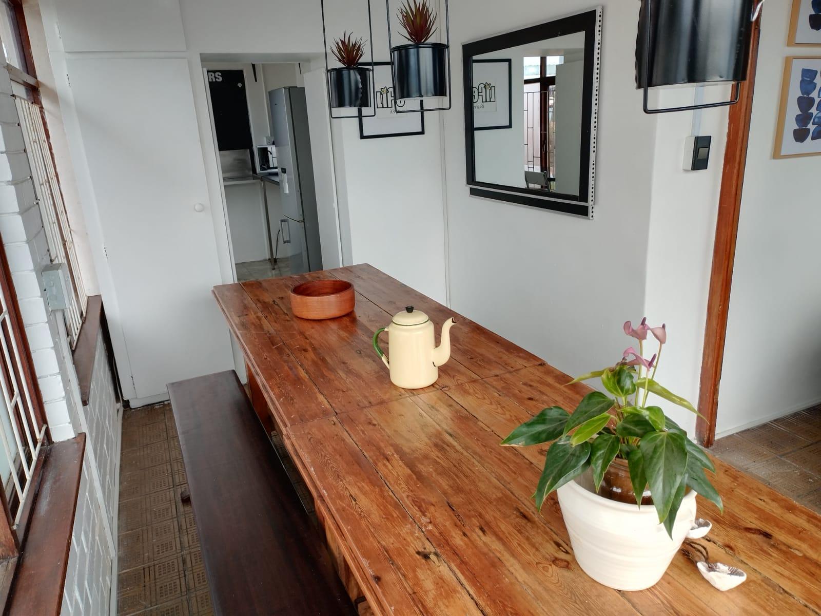 Welcome to our charming house in Saldanha Town, where character meets comfort. With its high ceilings and wooden floors, this property exudes a unique charm that will captivate your senses. Nestled conveniently on the Main Road and just a leisurely stroll away from the beach, our location offers the perfect blend of tranquility and accessibility. Indulge in the cozy ambiance of our bar and restaurant on site, where you can unwind and savor delectable dishes. Our small kitchen is equipped to cater to your culinary needs, while the dining room boasts a stunning Oregon pine table that sets the st