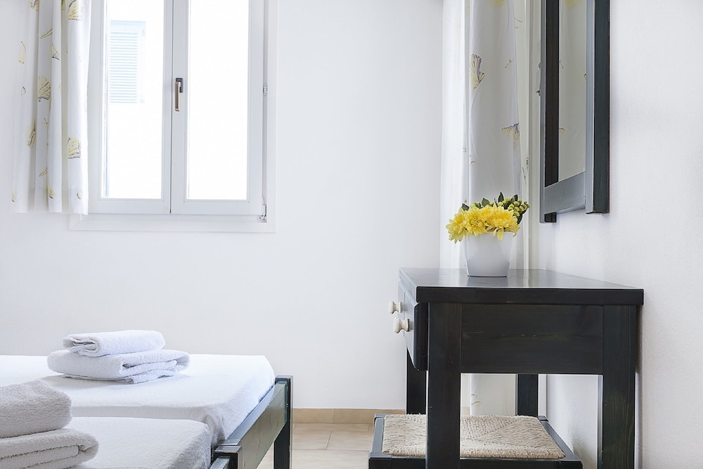The property consists one building with 24 units, a small court yard and a garden and have following facilities: reception (08:00-13:00 & 18:00-21:00 h) with safety box, TV-lounge, Wi-Fi Internet access, breakfast area and small bar, fresh water pool with sun beds, sun beds and umbrellas on the beach (extra charge).All rooms have air conditioning, telephone, satellite TV, refrigerator, bathroom with shower, WC and balcony or terrace.**Important: Please advise arrival time, if arrival outside the reception hours!**Address: 84401 Piso Livadi, Paros, Greece.