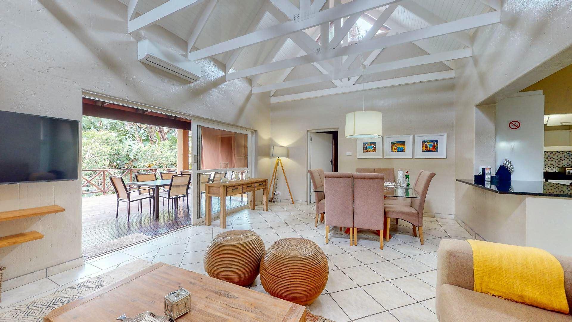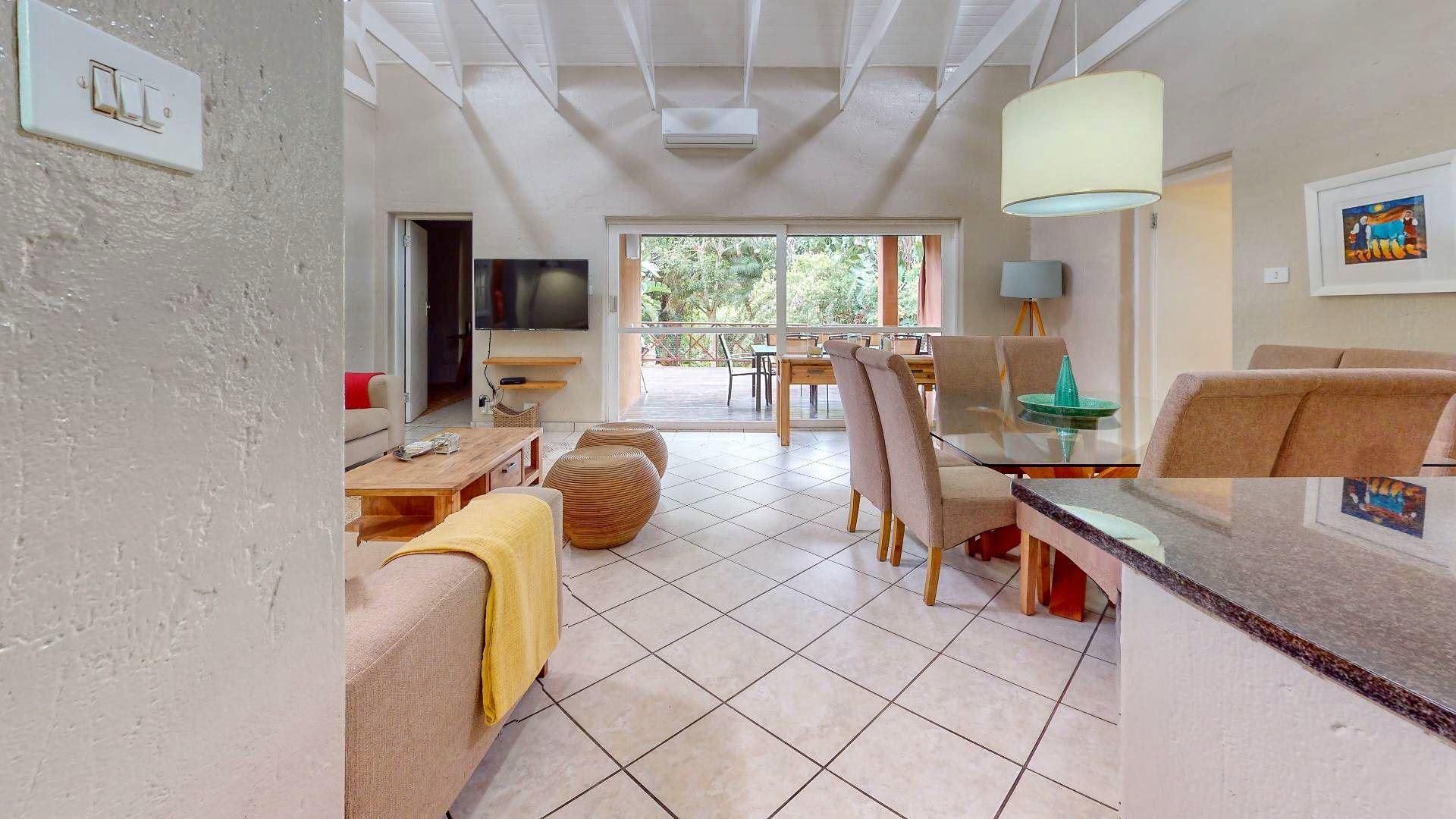 San Lameer 2601 is a four-bedroom, three-bathroom ground-floor villa in the incredibly desirable San Lameer Estate, Southbroom, KwaZulu-Natal. The villa accommodates up to eight persons with the entrance on the ground floor and a couple of steps leading down to the front door entrance.When entering the villa, you will love the spacious open living and kitchen area that leads onto the private deck while guests love the modern feel and layout of the space. While five aircons ensure the villa stays cool during the hot summer days. The property features a dedicated JoJo tank, providing