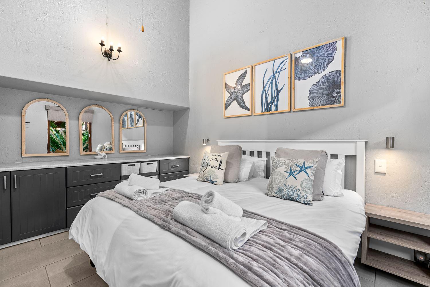 San Lameer Estate is South Africa's own tropical paradise. It has something to offer the whole family as well as having direct access onto two magnificent blue flag beaches. Based on the South Coast of KwaZulu-Natal, San Lameer was the very first golfing estate developed in South Africa.This unit can accommodate 4 adults and comprises 2 bedrooms with 1 en-suite bathroom. The main bedroom is furnished with a king-size bed and the second bedroom contains two single beds. The ensuite bathroom is fitted with a shower-over-bath, washbasin and toilet. The second bathrooms has a shower .