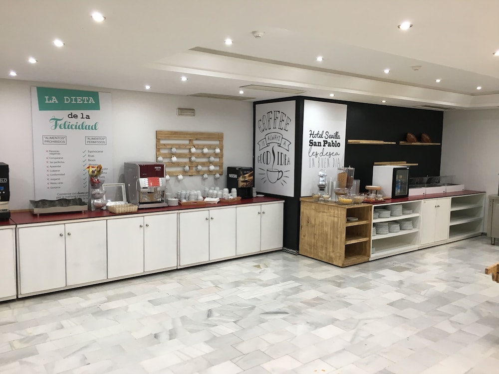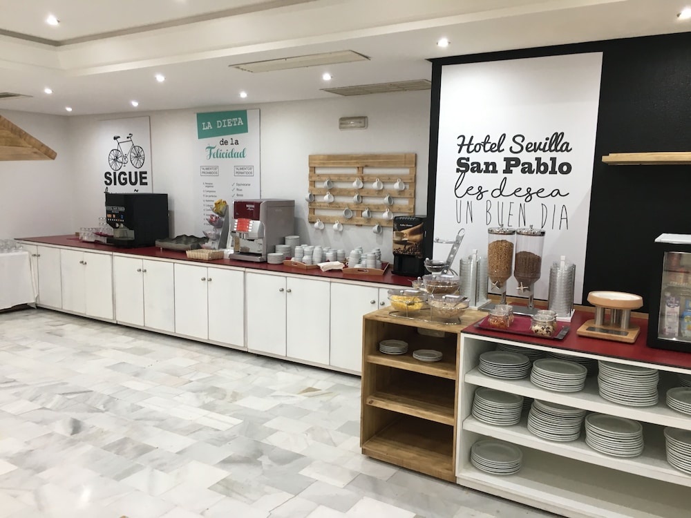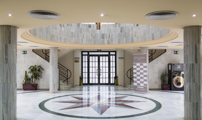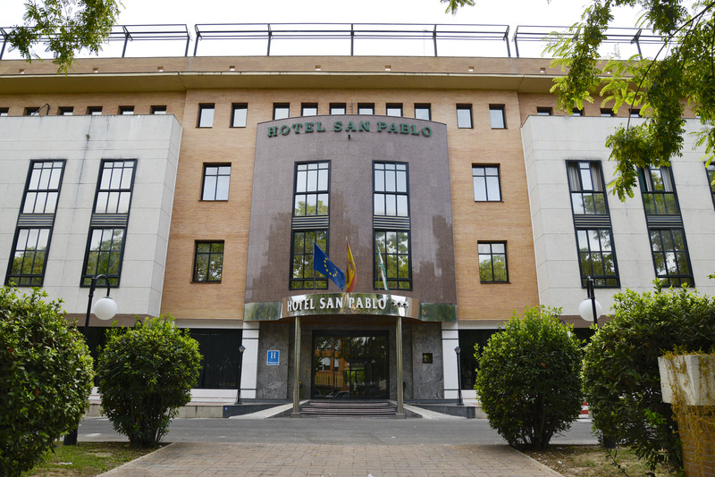 San Pablo Sevilla Hotel is perfectly located in front of Fibes, Convention and Exhibition Congress Palace, 3.5 km from San Pablo Airport and 6 km from Train Station Santa Justa. In the area you can find several shopping malls: Zona Este, Los Arcos and Nervion Plaza.Our Hotel has 102 spacious rooms from 40 to 60 m2, equipped with full bathroom. Also with 4 meeting rooms and underground car parking. Our hotel is perfect for business guests and for families wanting to visit the city center. This is possible thanks to our connections with the city center (7 kms. away from the hotel). Behind our building there is located bus stop number 27, going to the historic area in the center, and 5 mins. walking from the hotel you have bus stop number 28, that goes to Prado de San Sebastian. 700 mts. away you have FIBES train stop that connects with different points in town and the surroundings in Seville.All this will make your time in San Pablo Sevilla Hotel a great experience.