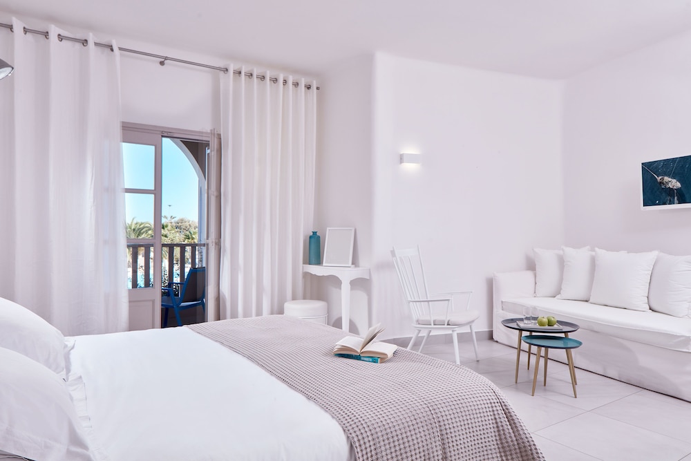 The hotel offers following facilities 24 hours reception, room service (extra charge), WiFi (extra charge), TV lounge, restaurant, pool bar, swimming pool, children’s pool, jacuzzi, sun beds, umbrellas, fitness centre, sauna (extra charge ) and conference centre. All rooms have air conditioning, mini bar, telephone, satellite TV, safety box, bathroom with bathtub or shower, WC, hairdryer and balcony or terrace.** Please note that some of the above facilities may be closed due to weather, seasonal conditions.**Address: Perivolos Village, 84700 Perivolos, Santorini, Greece.