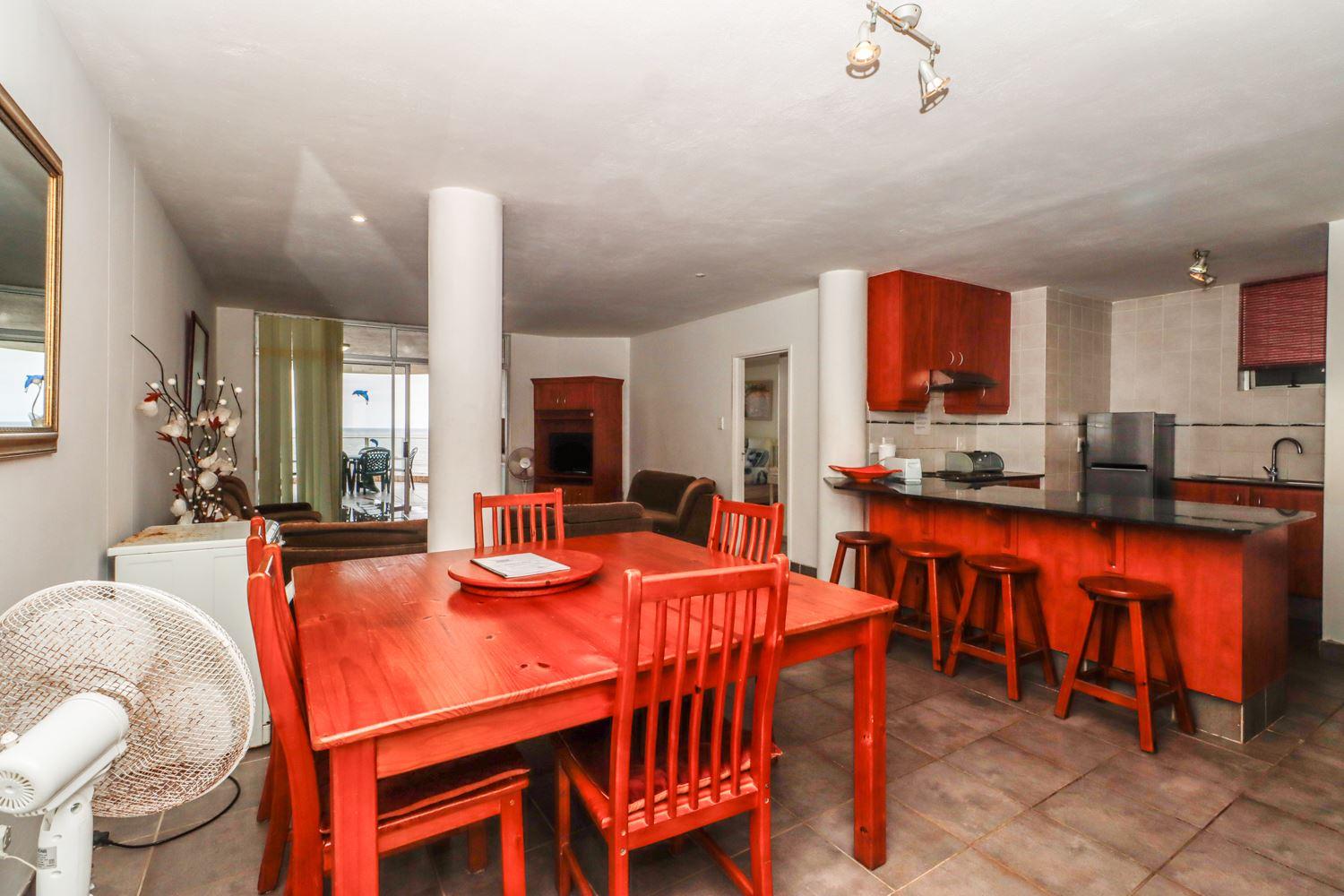 Santorini 302A is a spacious, three bedroomed self catering apartment in a secure gated complex situated on the beach front in the heart of Margate - offering spectacular and breathtaking sea view and sun rises from you balcony!All amenities are within walking distance with the main beach within two minutes walk from the gate. There are lots of activities on and around the main beach with the pier right on your doorstep. This spacious modern apartment can accommodate up to six guests and features an open-plan kitchen, a lounge and a dining area leading onto the balco