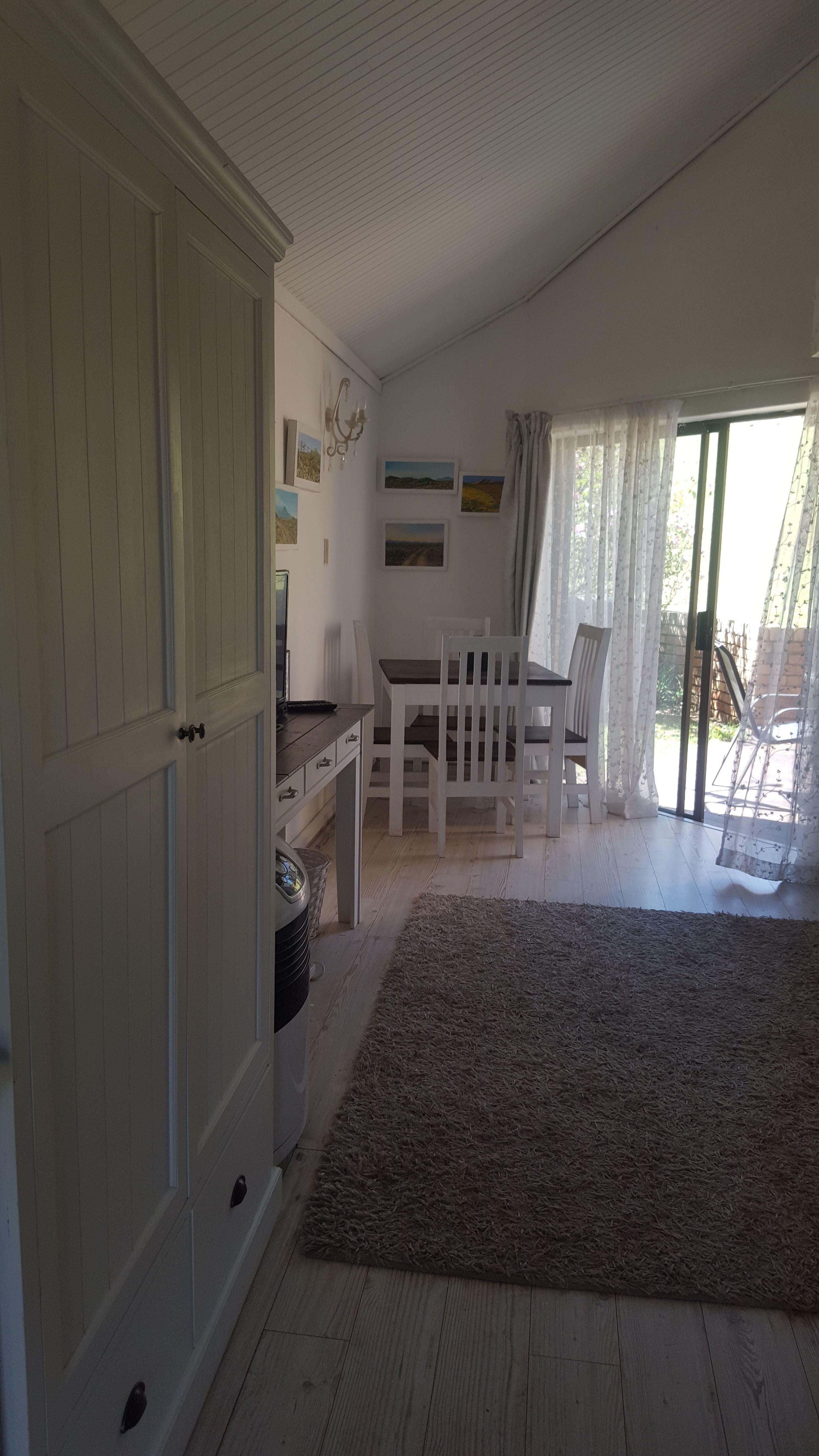 This unit consists of open-plan living and can accommodate up to 5 persons (4 Adults more comfortably). On the lower level of the house is a king-size bed and a TV with Netflix viewing, and a small kitchen that contains basic appliances such as a fridge, a microwave, a 2 plate stove (No Oven). The adjacent lounge and dining area leads directly out to a small enclosed pet-friendly garden.