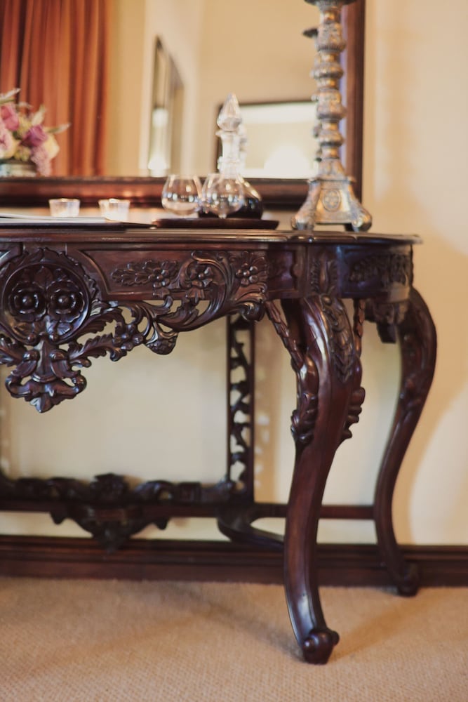 The Honeymoon Suite is unashamedly romantic with its large hearth, exquisitely carved four-poster bed and over-sized bathroom.