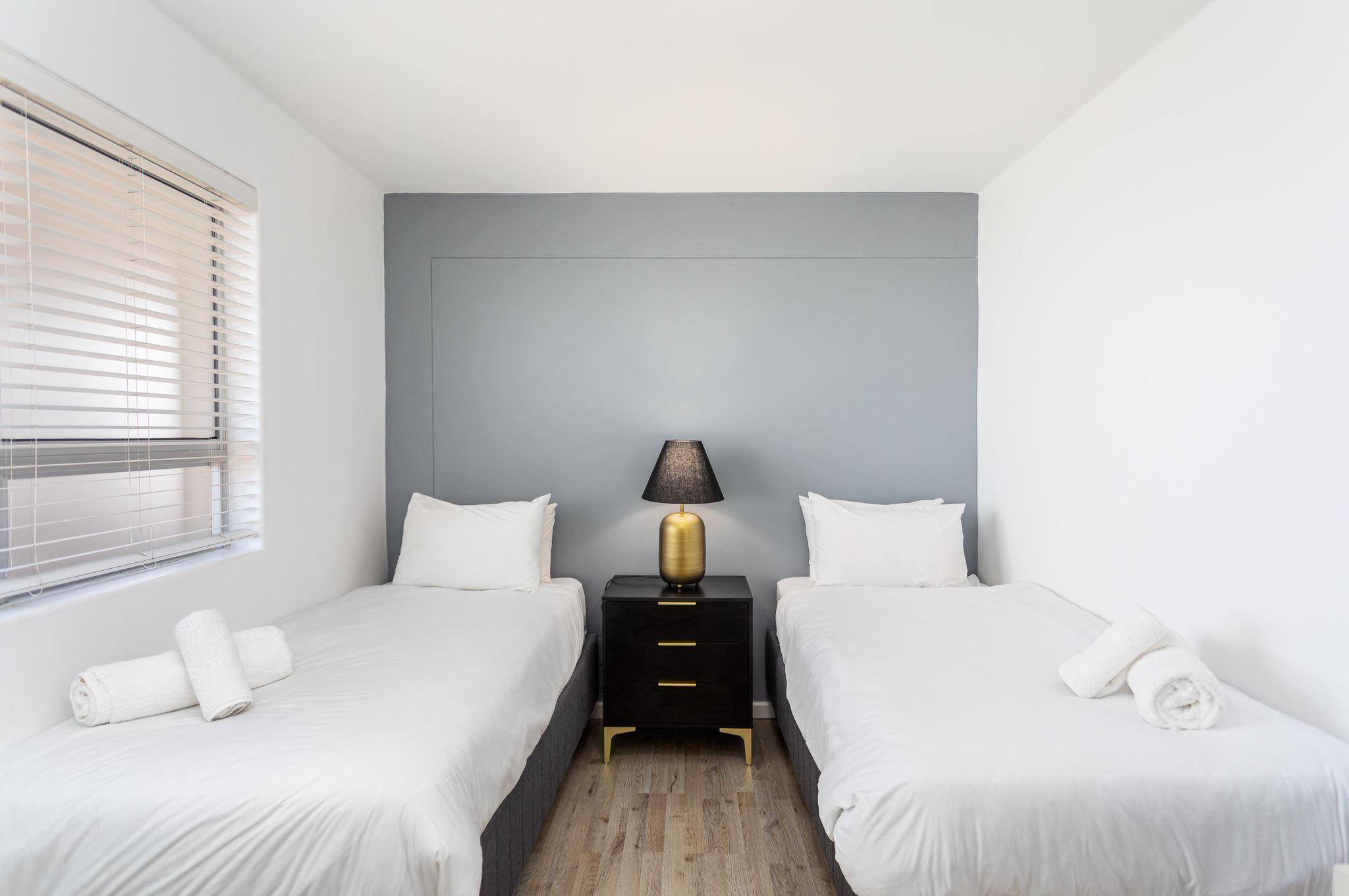 Both bedrooms are spacious and well-designed, each featuring high-quality furnishings and ample storage space. The master bedroom includes a comfortable queen-sized bed, while the second bedroom offers versatility with twin beds or a double, perfect for guests or family.