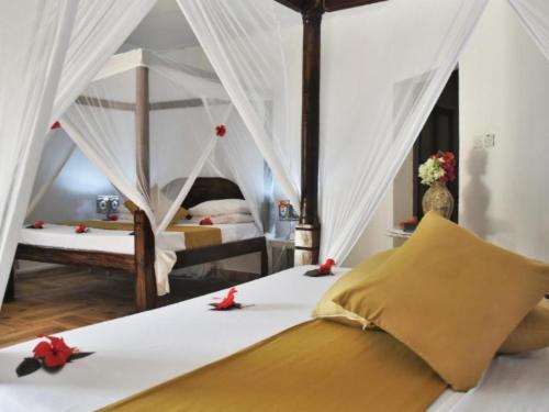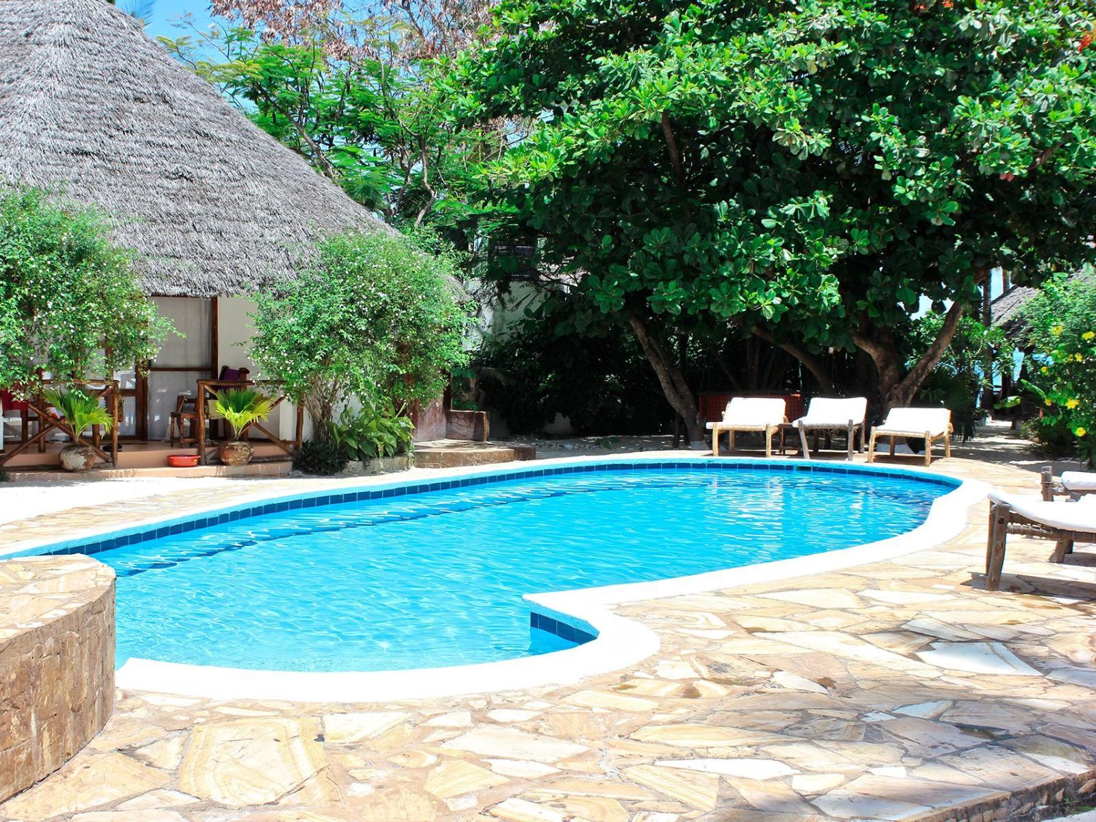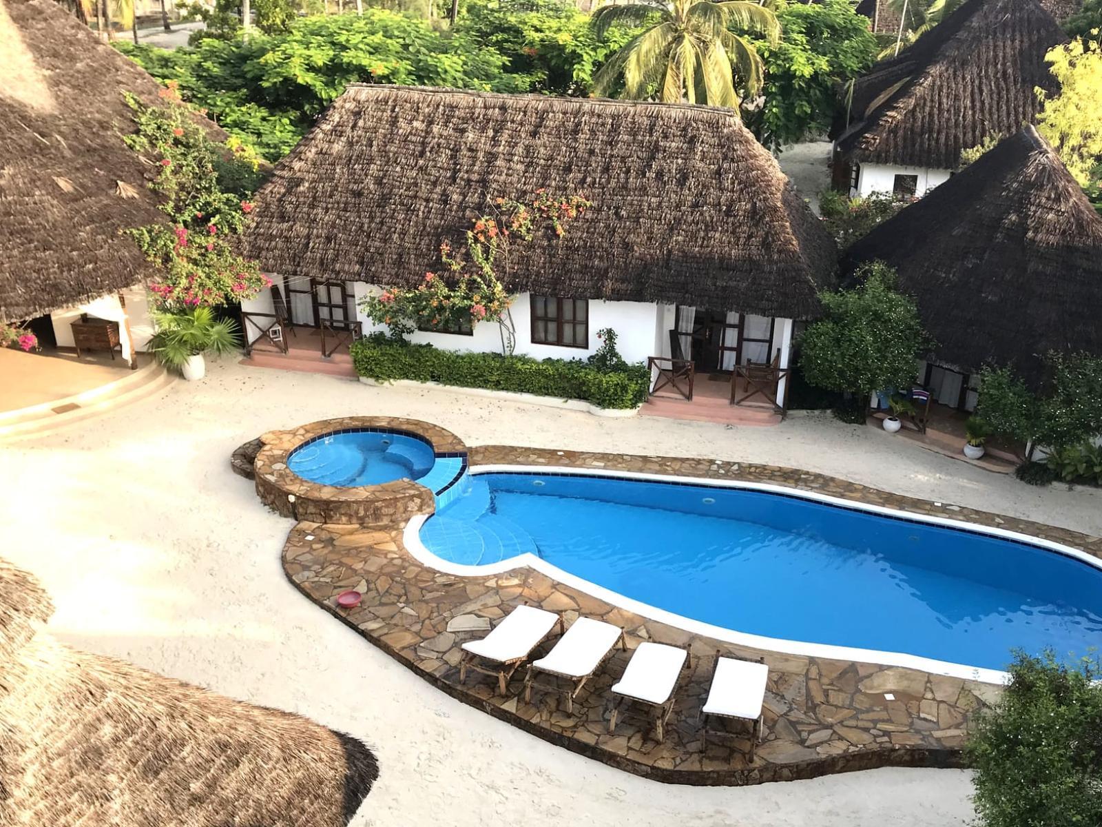 The hotel features rooms decorated in Swahili style, furnished with local materials that reflect the island’s character. All rooms include air-conditioning, ceiling fans, and safes for your comfort. Sea view rooms are located directly on the beach, with private patios and direct ocean views, while the deluxe rooms overlook the pool and are just a short stroll from the shoreline. Each space is designed to bring a sense of calm and simplicity, supported by a kind and attentive staff who are always ready to assist.