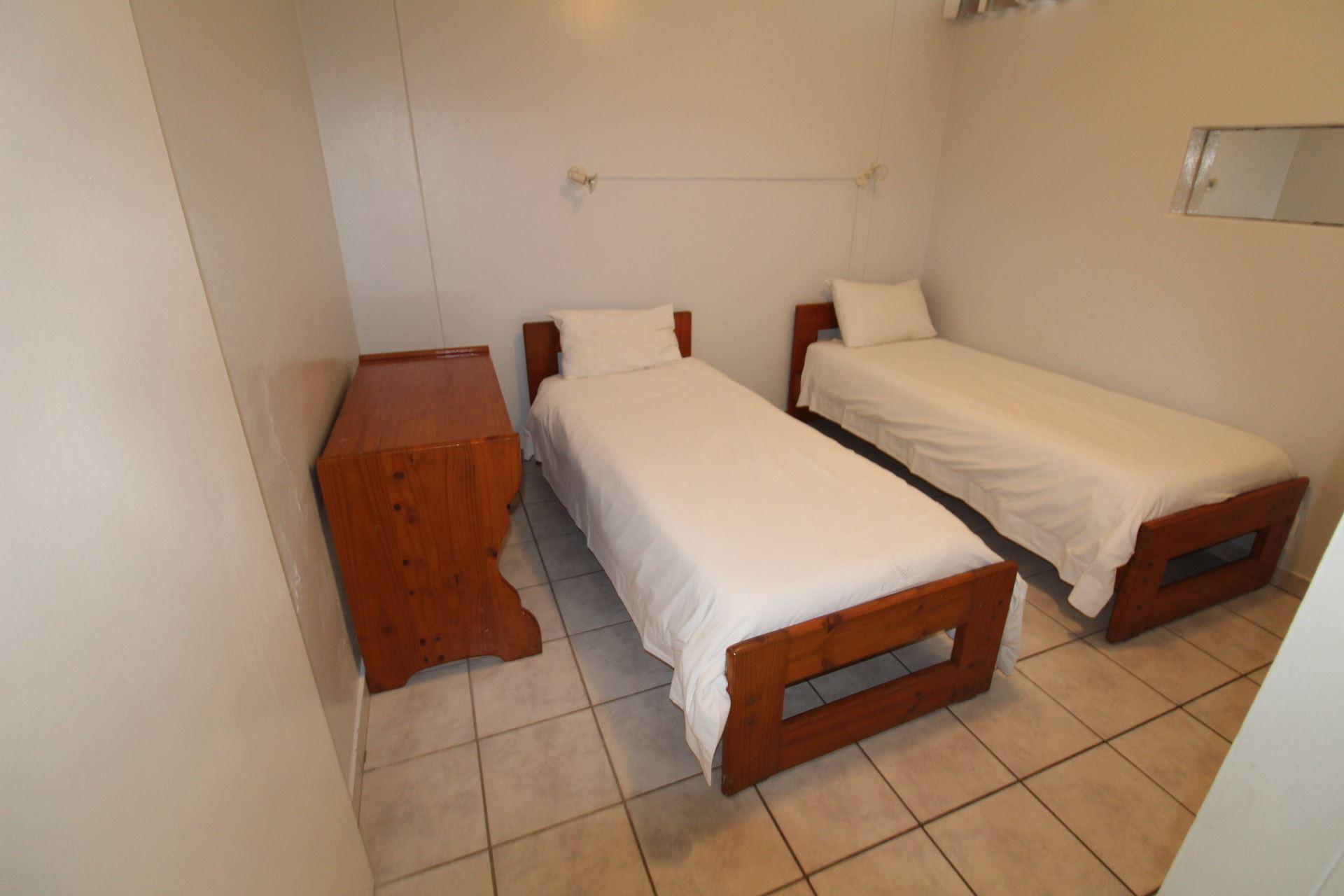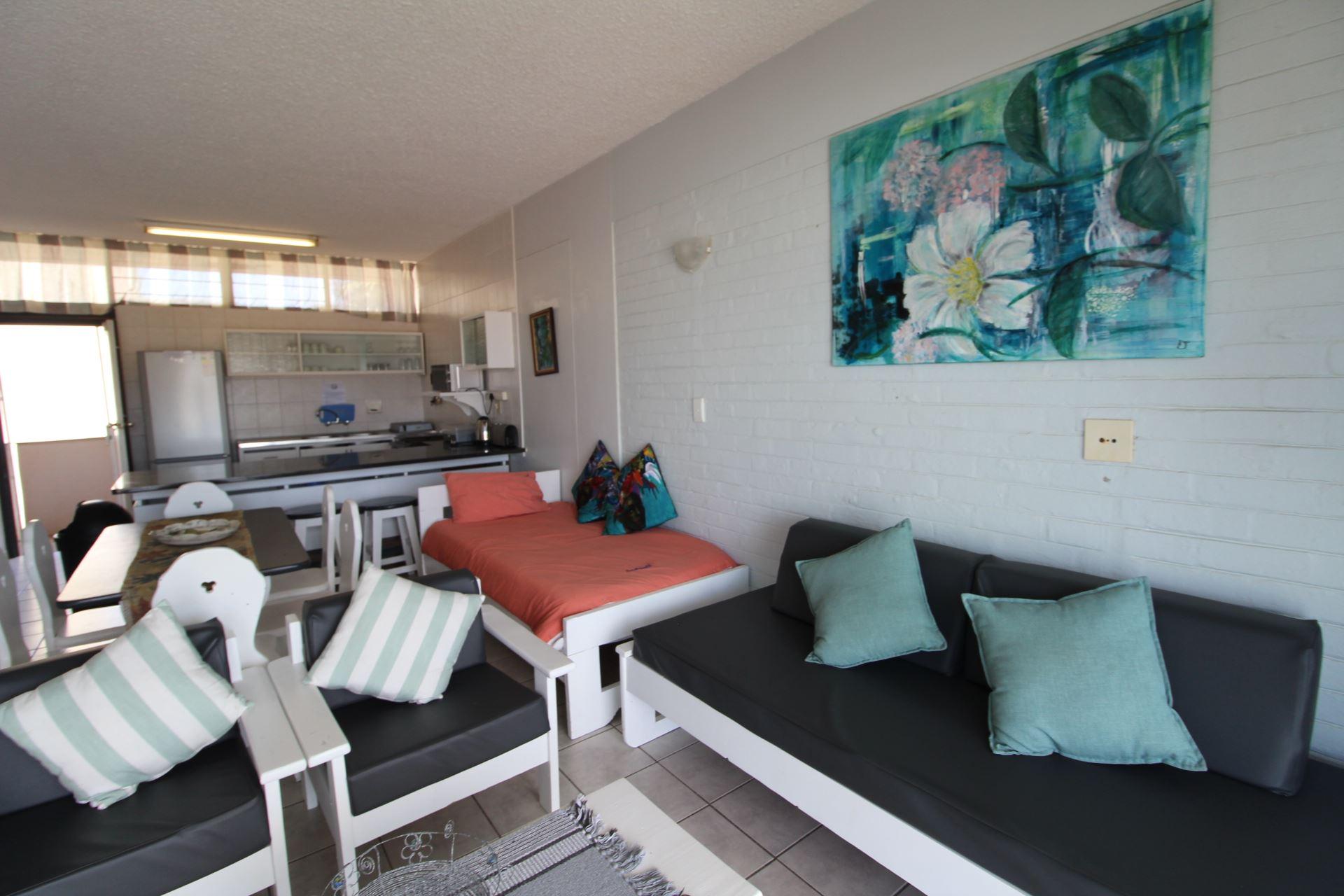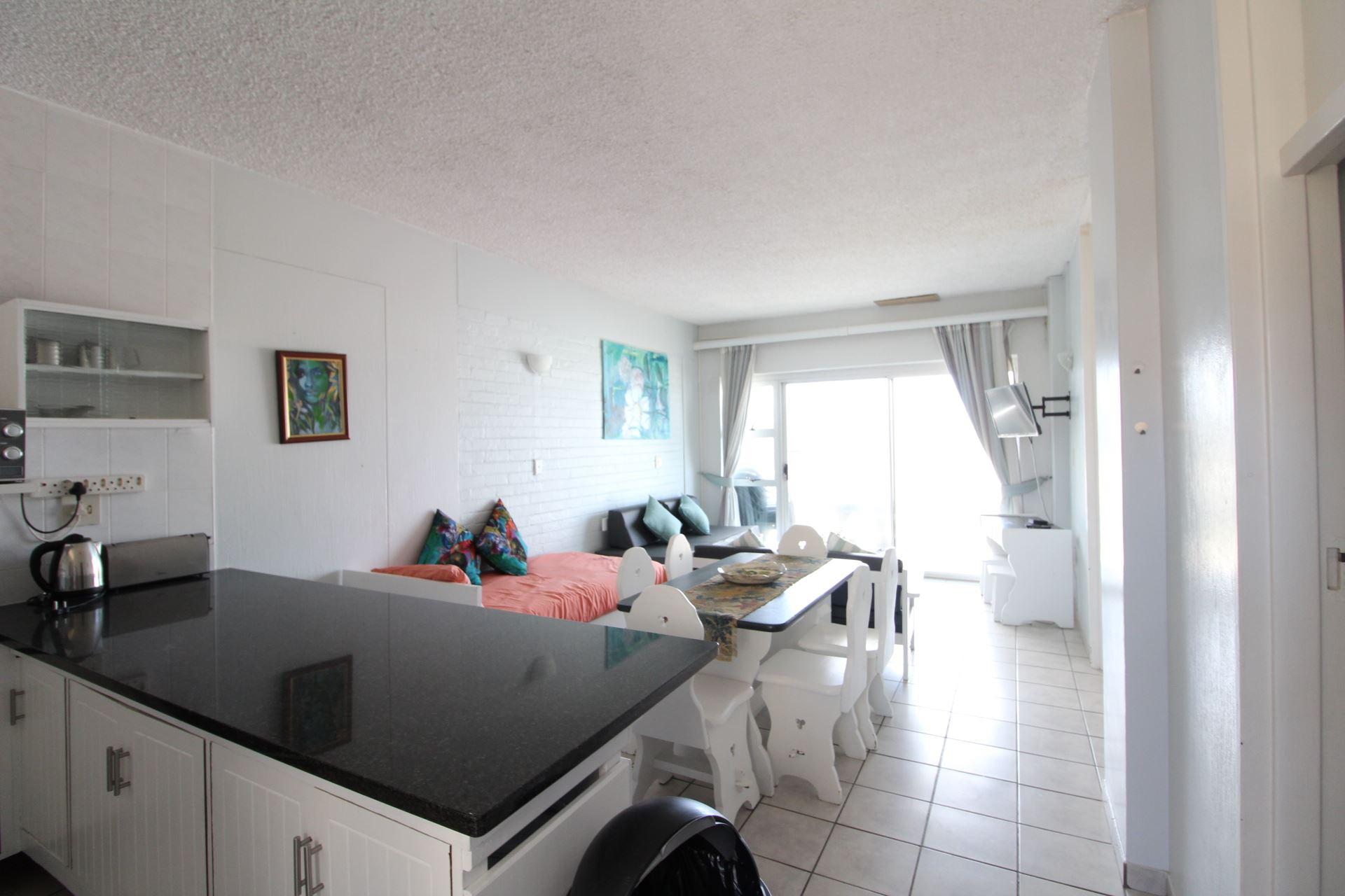 Seagull 405 is a self-catering holiday apartment in Margate.The unit is furnished with rustic furniture and a beach-type of style, family-orientated. The main bedroom is furnished with a double bed and the second bedroom is furnished with two single bed, the 5th bed is in the lounge area. Linen is supplied. The first bathroom is fitted with a bath, toilet, and basin. The second bathroom is fitted with a corner shower, toilet, and basin. Please bring your own towels and toiletries. The kitchen is equipped with a fridge, microwave, toaster, and kettle plus utensils. There is a