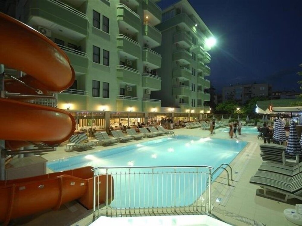 The hotel was built in 1997 and completely renovated in 2011. It consists of a total of 114 rooms spread over seven floors and two buildings. Located just 800 metres from the centre of Alanya and only 300 metres from the beach, the hotel is ideally situated for those wishing to be close to local amenities while enjoying a relaxing holiday of sea and sun. Guests can benefit from the hotel's facilities which include a hairdressing salon, a TV and internet corner, a bar and restaurant as well as the hotel's attractive 600-square-metre garden with sun-bathing terrace and two pools.