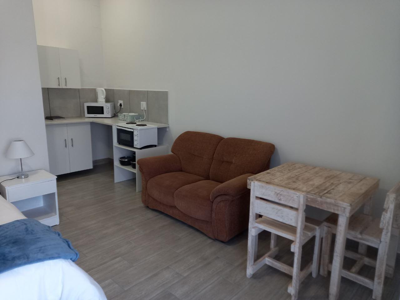 Seepampoentjie offers comfortable self-catering accommodation in a cozy studio apartment on a residential plot where the owners also live. The premises are in Britannica Heights, St. Helena Bay and has a panoramic view of the sea and the harbour.This unit has a private entrance and sleeps two guests. There is a queen-size bed and an en-suite bathroom with a shower. Linen and bath towels are provided, but guests must bring their own swimming towels.The kitchenette is equipped with a kettle, two-plate stove/oven, microwave and a small fridge. Freezer facilities can be arr