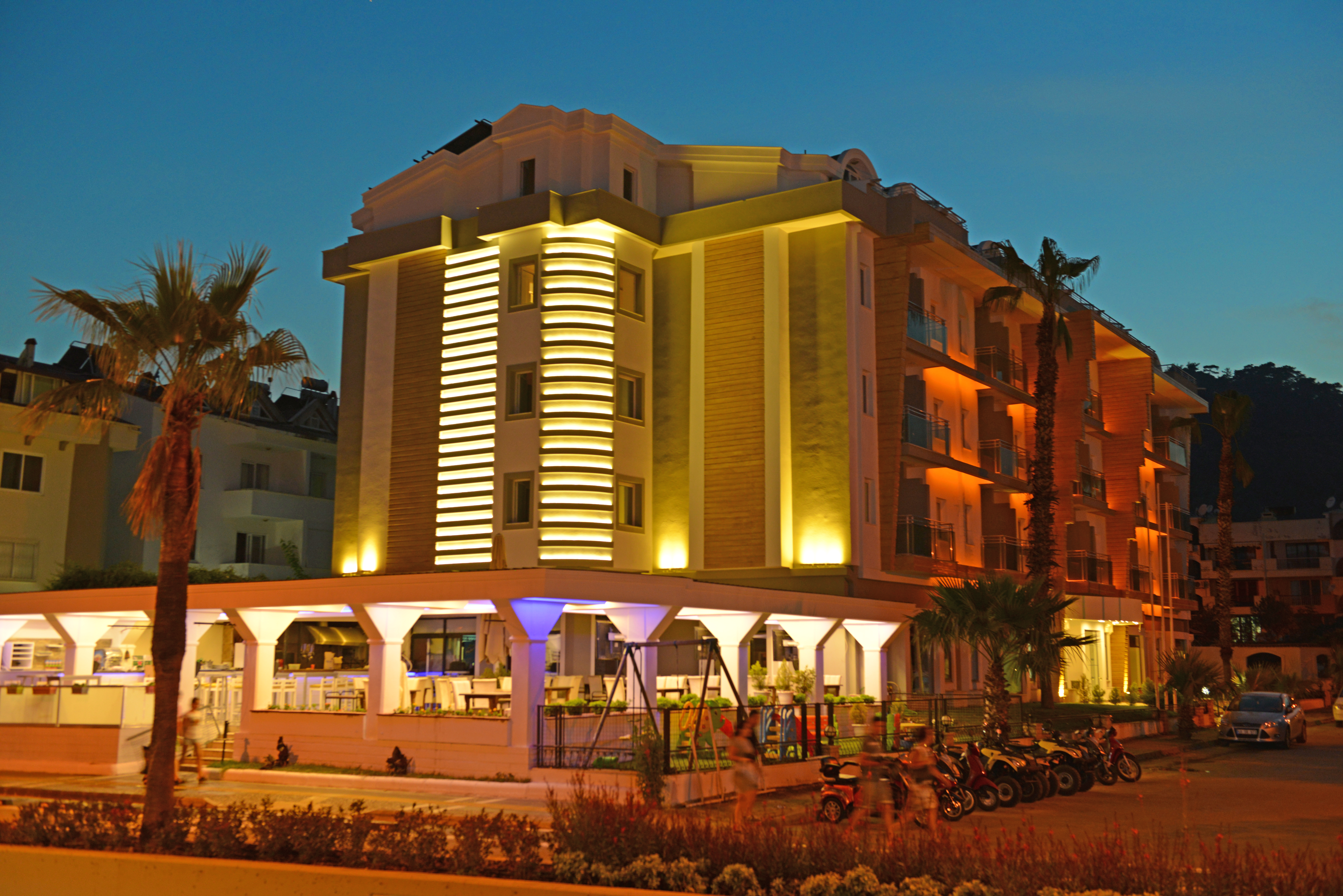 HotelSeray Hotel is a modern, attractive in style with airy interiors and a lovely pool area. It's great for those seeking high standards of comfort and service together.Central located to supermarket (200mt) which is the biggest one in Marmaris for stocking up on basic essentials.A good base for sightseeing, a regular bus service stops just front of the hotel to take you the other places of interest along the coastline.+ Restaurant & BarSeray Hotel offers excellent and unmatched samples of Turkish and World's cuisine at its restaurant and poolside snack bar any hour of the day for those who seek a romantic evening, a warm and joyous atmosphere while having delicious and different meals at our restaurant or sipping favourite drinks at our poolside snack bar.A la carte menu, special menu, set menu, children's menu, snack menu and vegeterian menu on your demand are available.+ Poo