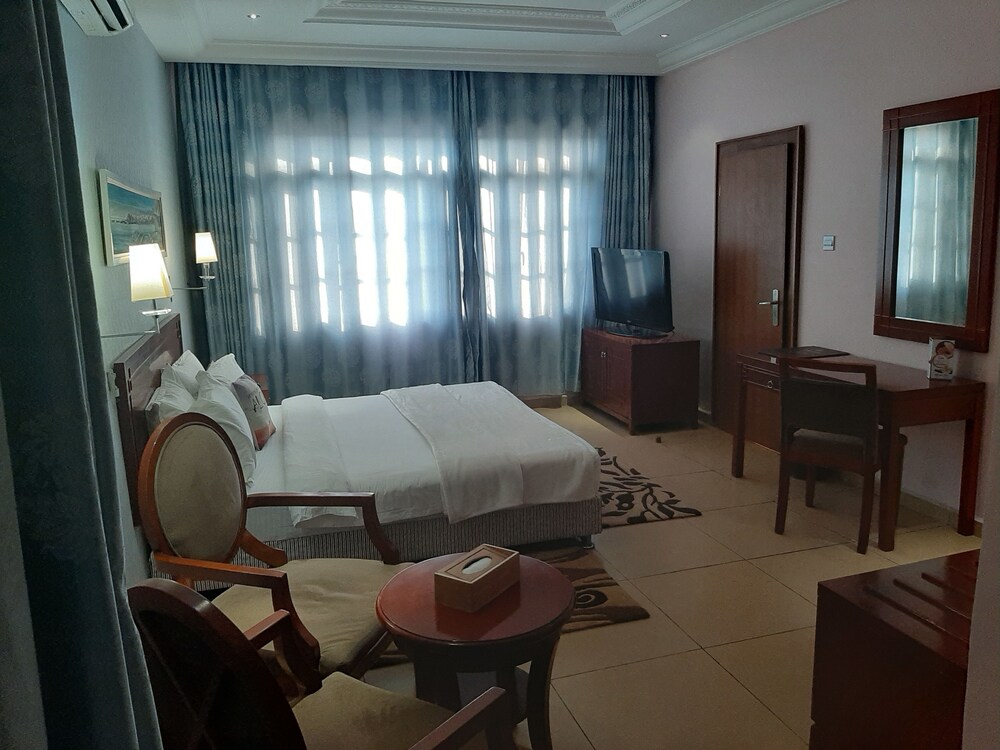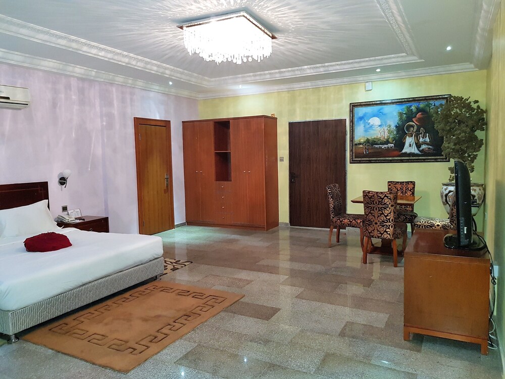 Set in Abuja 6 km from Big Church Serendib Hotel & Service Apartments offers accommodation with a restaurant free private parking a fitness centre and a bar. Featuring family rooms this property also provides guests with an outdoor pool. The accommodation provides a 24-hour front desk room service and currency exchange for guests. At the hotel all rooms are fitted with a desk a flat-screen TV and a private bathroom. The units at Serendib Hotel & Service Apartments feature air conditioning and a wardrobe. A continental breakfast is available every morning at the accommodation. Serendib Hotel & Service Apartments offers a terrace. You can play billiards at the hotel and car hire is available. Cameroon Embassy is 8 km from Serendib Hotel & Service Apartments. The nearest airport is Nnamdi Azikiwe International 29 km from the accommodation and the property offers a paid airport shuttle service.