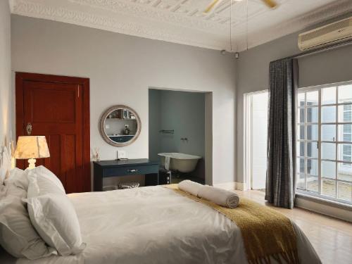 Step into your sanctuary and discover a world of luxurious amenities meticulously crafted to elevate your experience. Adorned with a dressing table, hairdryer, and a spacious wardrobe complete with hangers, we ensure your every need is met. Sink into a state of bliss as you curl up amidst plush pillows and soft blankets, enveloping yourself in exquisite comfort. Delight in the ultimate entertainment experience with a state-of-the-art smart TV, offering a plethora of streaming options including Showmax and Netflix. Revel in uninterrupted connectivity with our complimentary Wi-Fi, and savor the ease of a kitchenette equipped with a fridge, microwave, kettle, and a dining table adorned with elegant cutlery. Allow your senses to be tantalized with our offerings of complimentary coffee, milk, and water, ensuring you are constantly refreshed.
