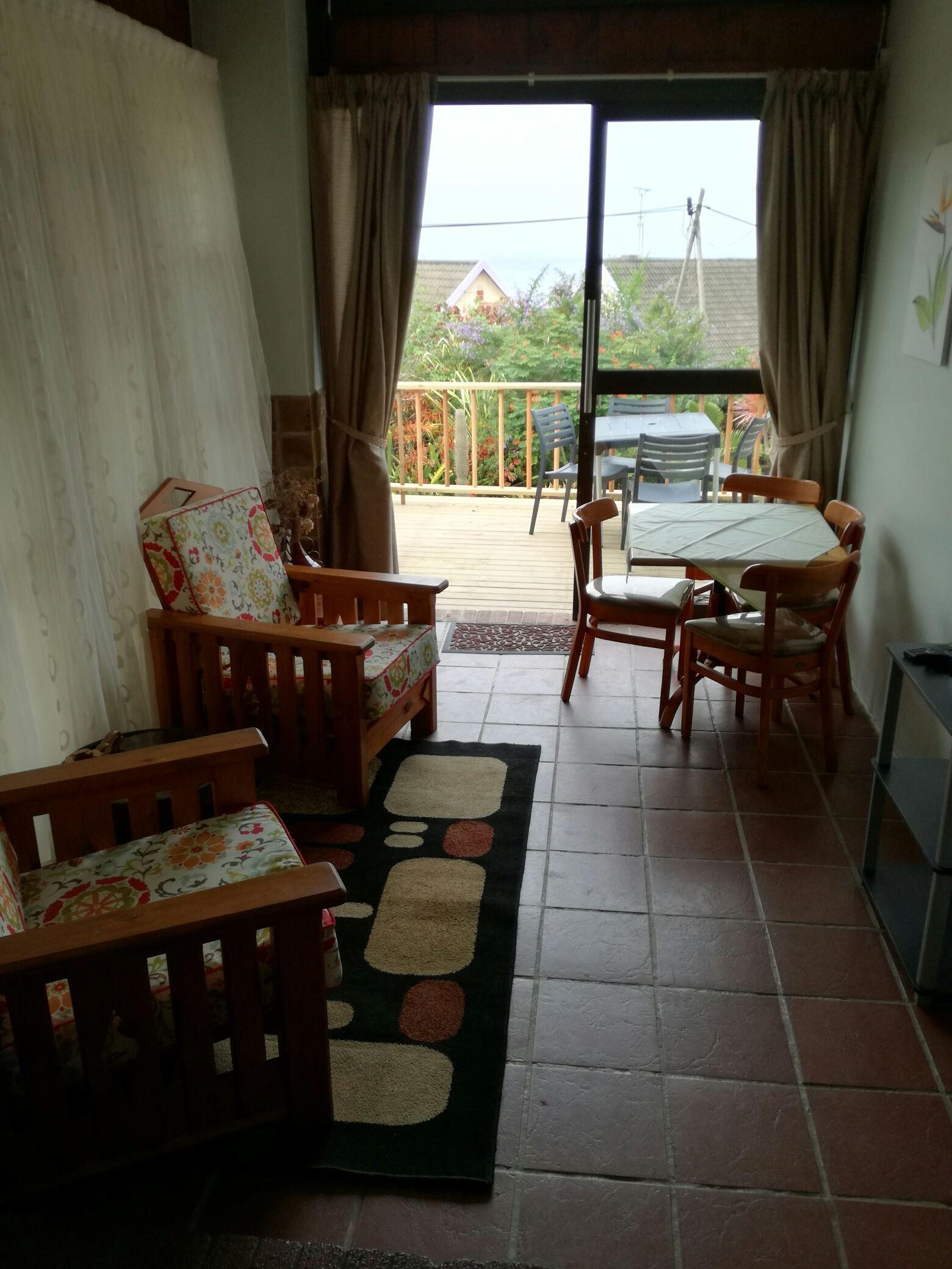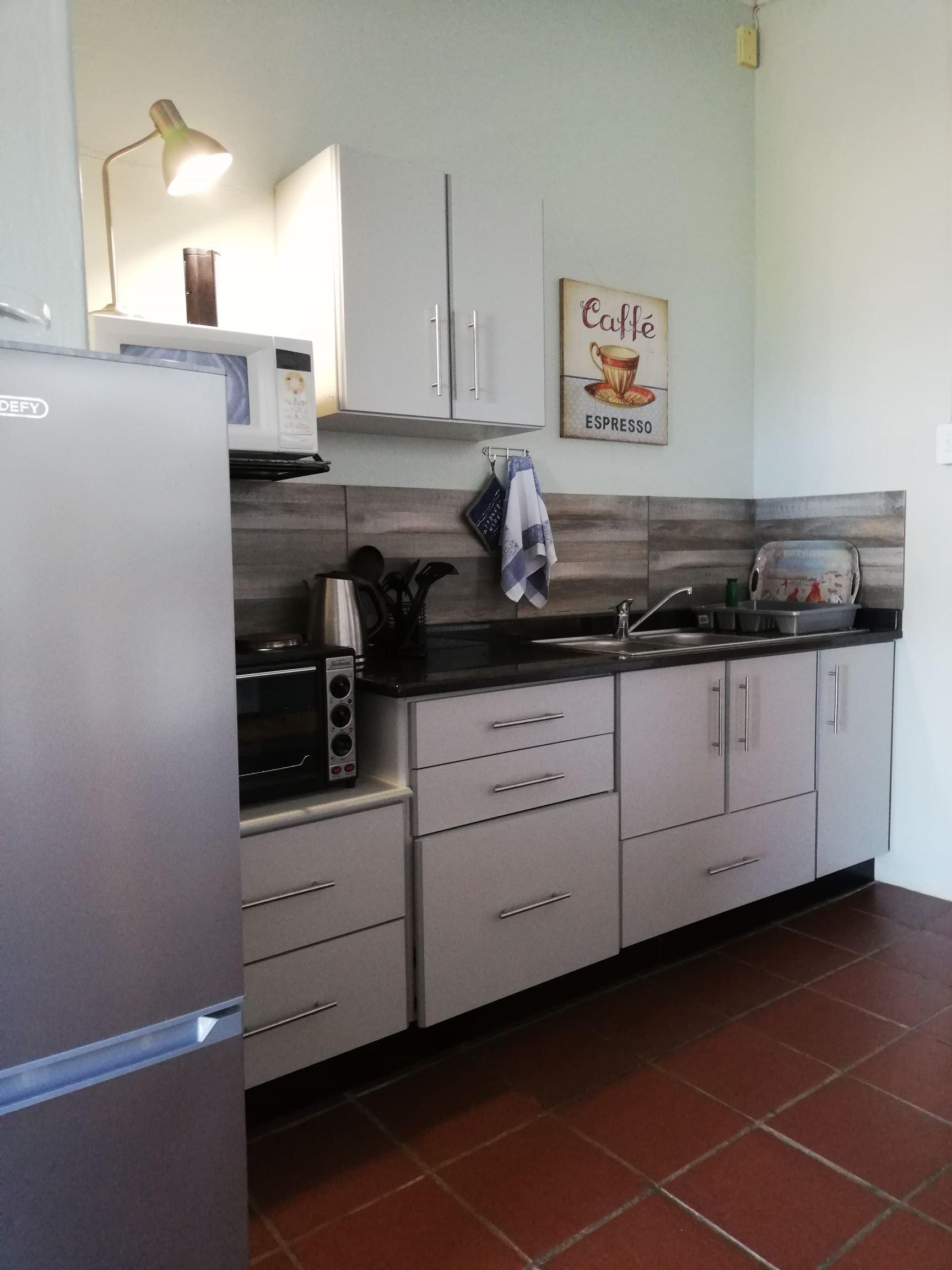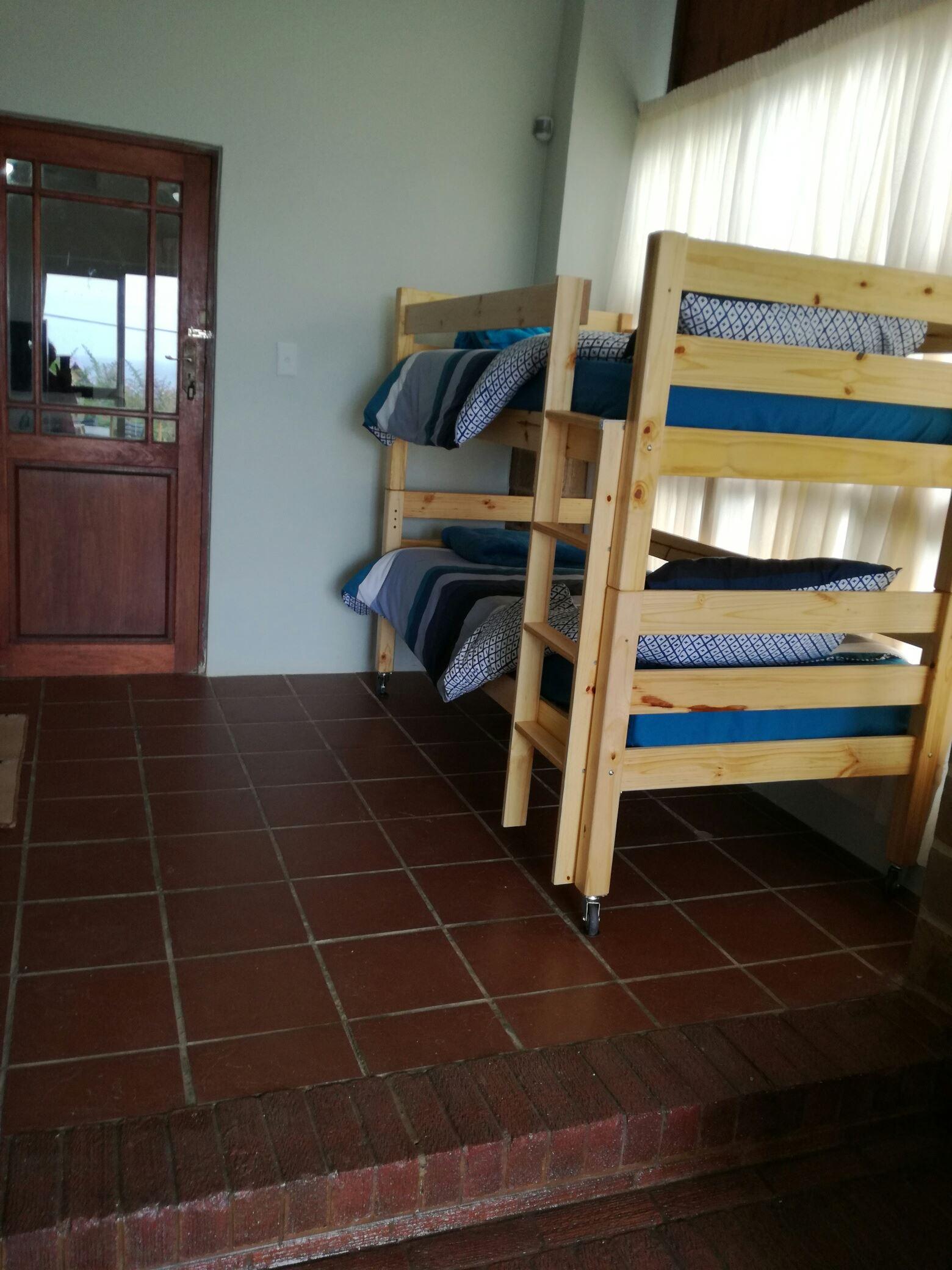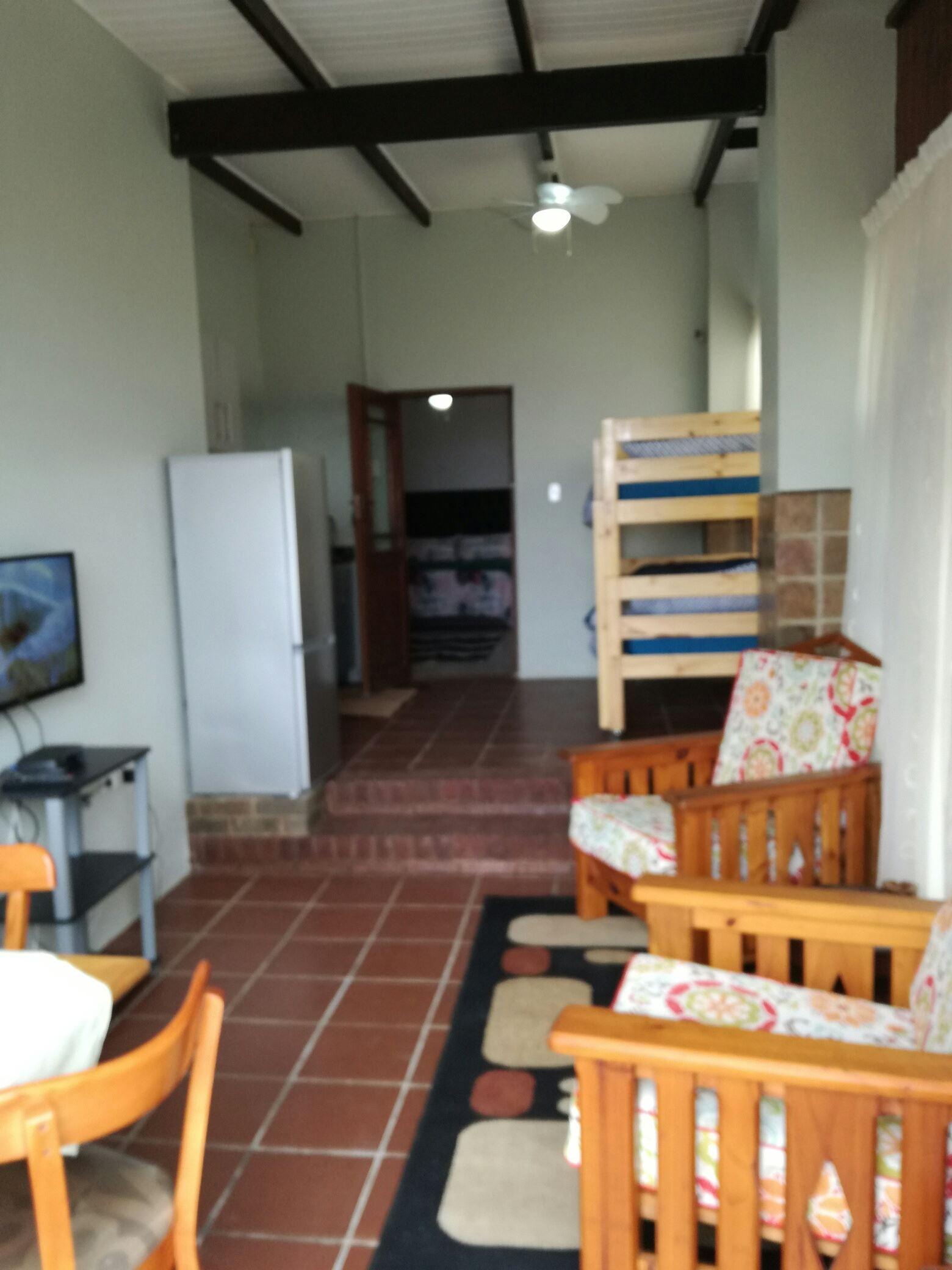 The room is furnished with a queen-size bed and a full bathroom. Bunk beds are available in the open-plan living area. Linen is provided but guests need to bring their own towels. Equipped with DStv Family Package. There is a dining area for four. The kitchen is equipped with cutlery, crockery, pots and pans as well as a two-plate stove and oven, a microwave, and a fridge-freezer.