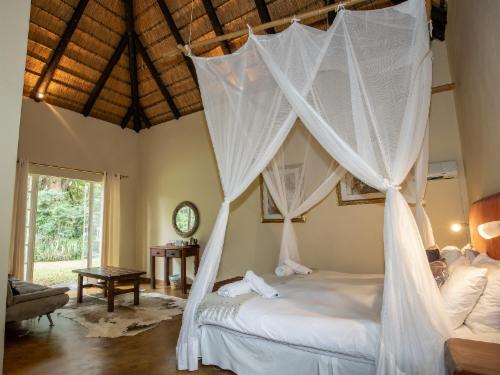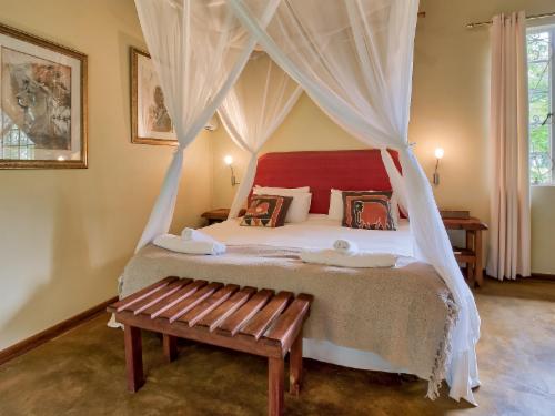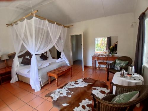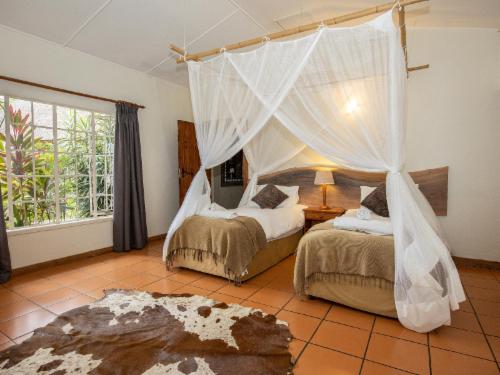 Escape to the serene beauty of Mpumalanga at Seringa Lodge, where comfort meets nature in a peaceful garden setting. This charming thatched farmhouse invites you to relax, unwind, and explore the wonders of White River and beyond.Seringa Lodge is nestled on the outskirts of White River, a quaint South African town, and serves as an ideal base for discovering the region’s many attractions. Surrounded by lush gardens, the lodge offers stunning views of Legogote Mountain, also known as “The Lion Head.” Guests can choose from comfortable double, twin, or family rooms, all with breakfas