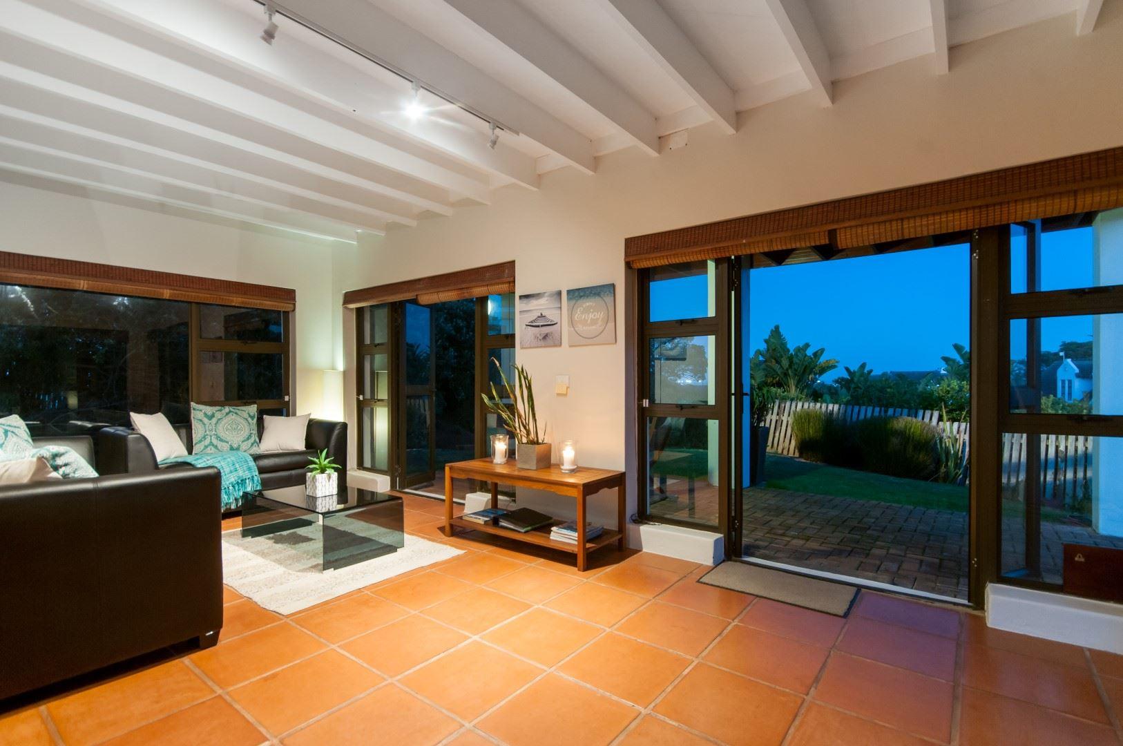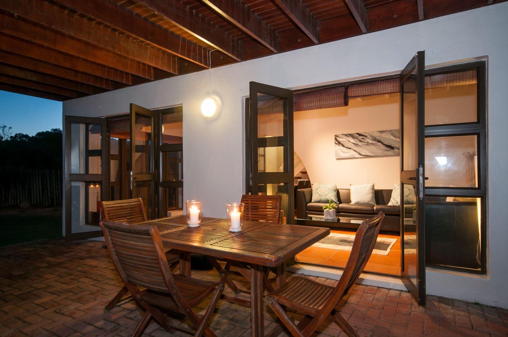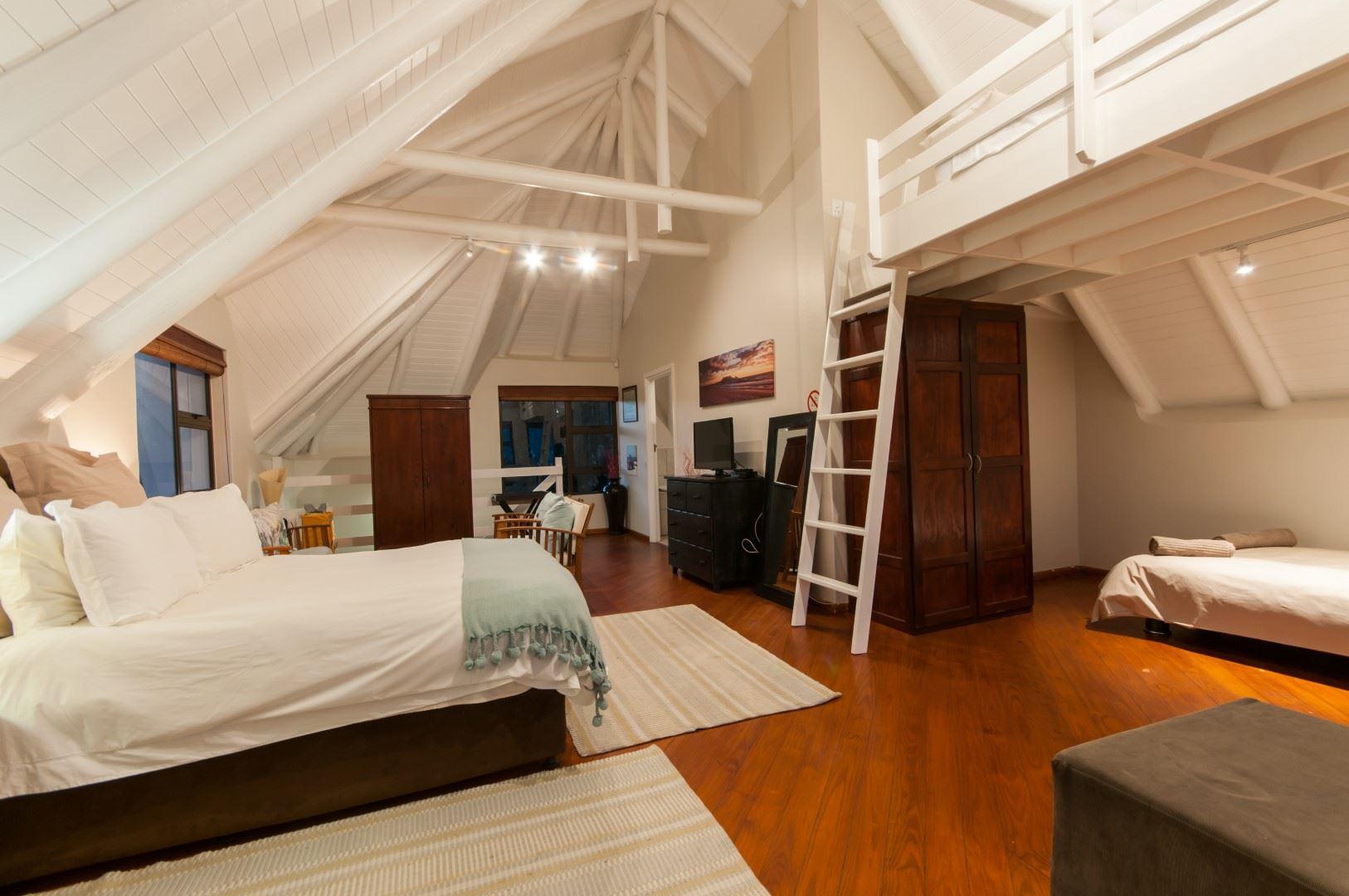 St Francis E’s-cape is a contemporary, modern home in the heart of St Francis Village. With the recently renovated shingle roof and white washed ceilings, the house is bright with beautiful views over the village and out to sea. Large enclosed garden provides safety for pets. Central, but quiet location within 500m of both golf courses and walking distance to shops and swimming beach. Downstairs the house comprises a fully equipped kitchen, dining room and informal lounge, which opens onto covered patio with outside dining facilities and Weber braai. Upstairs the queen bed sleeps two adults, p