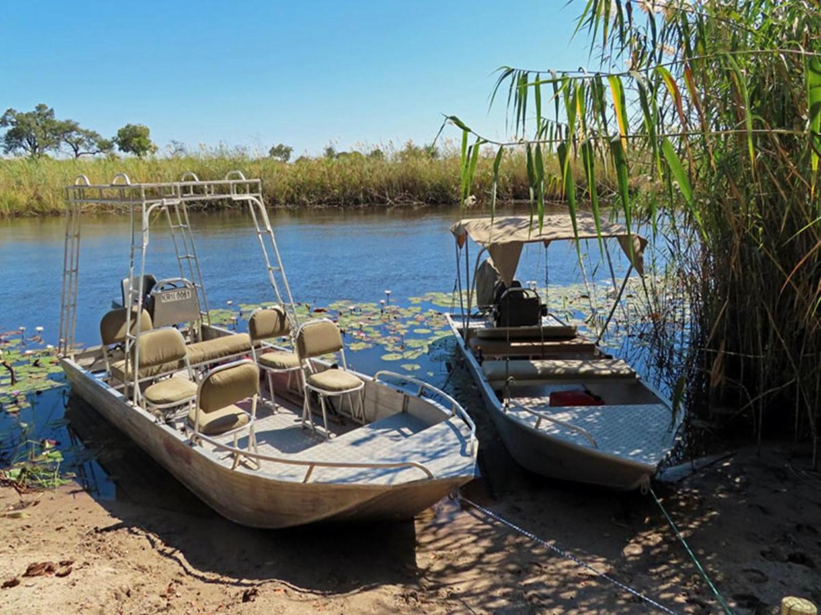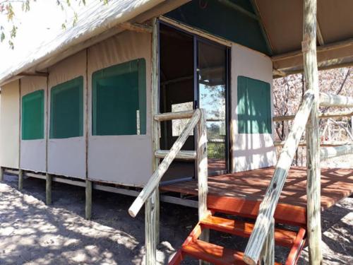 Stay in the tranquility of nature in one of our self-catering poles and canvas chalets overlooking the river. Capture the breathtaking sunsets from your porch.Sharwimbo River Camp is elevated high on the banks of the Kwando river and offers an exclusive, eco-friendly, and affordable stay with spectacular views of this wonderful wetland with its abundance of birds and wildlife. The Kwando river Namibia boasts a wonderfully rich ecosystem in all its diversity and beauty.Every tented chalet has a river view. There is a charging station for each tent with solar power. The t