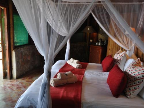 Shayamoya is a true gem offering genuine hospitality, unique settings with stunning panoramic views across the Pongolapoort Lake (also known as Jozini) Lebombo Mountains, and the Phongolo Nature Reserve. Our specialty is the challenging sport of tiger fishing, where the record is 8.3 kg; however we also offer game drives, boat cruises, elephant tracking and rhino and bush walks.Ten luxurious thatched chalets are individually situated with their own private viewing deck, en-suite wooden bathroom and enclosed outdoor showers that make the experience truly romantic. A central lodge accommodates t