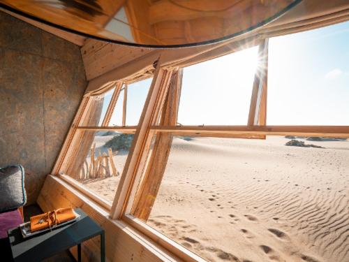 The lodge is located in the famous Skeleton Coast Central Concession between the Hoarusib and Hoanib River in the Skeleton Coast Park, only 68k from Möwe Bay. Each room has a shower, toilet and washbasin complimented with the necessary guest amenities. Each room also has a writing desk, bedside lamp and a wood burning stove.Attractions include day excursions to Möwe Bay seal colony and day excursion by vehicle to Möwe Bay seal colony. Guests will be shown the remnants of the Suiderkus Shipwreck, along the beach past the leftovers of the Karimona shipwreck, abandoned Wes