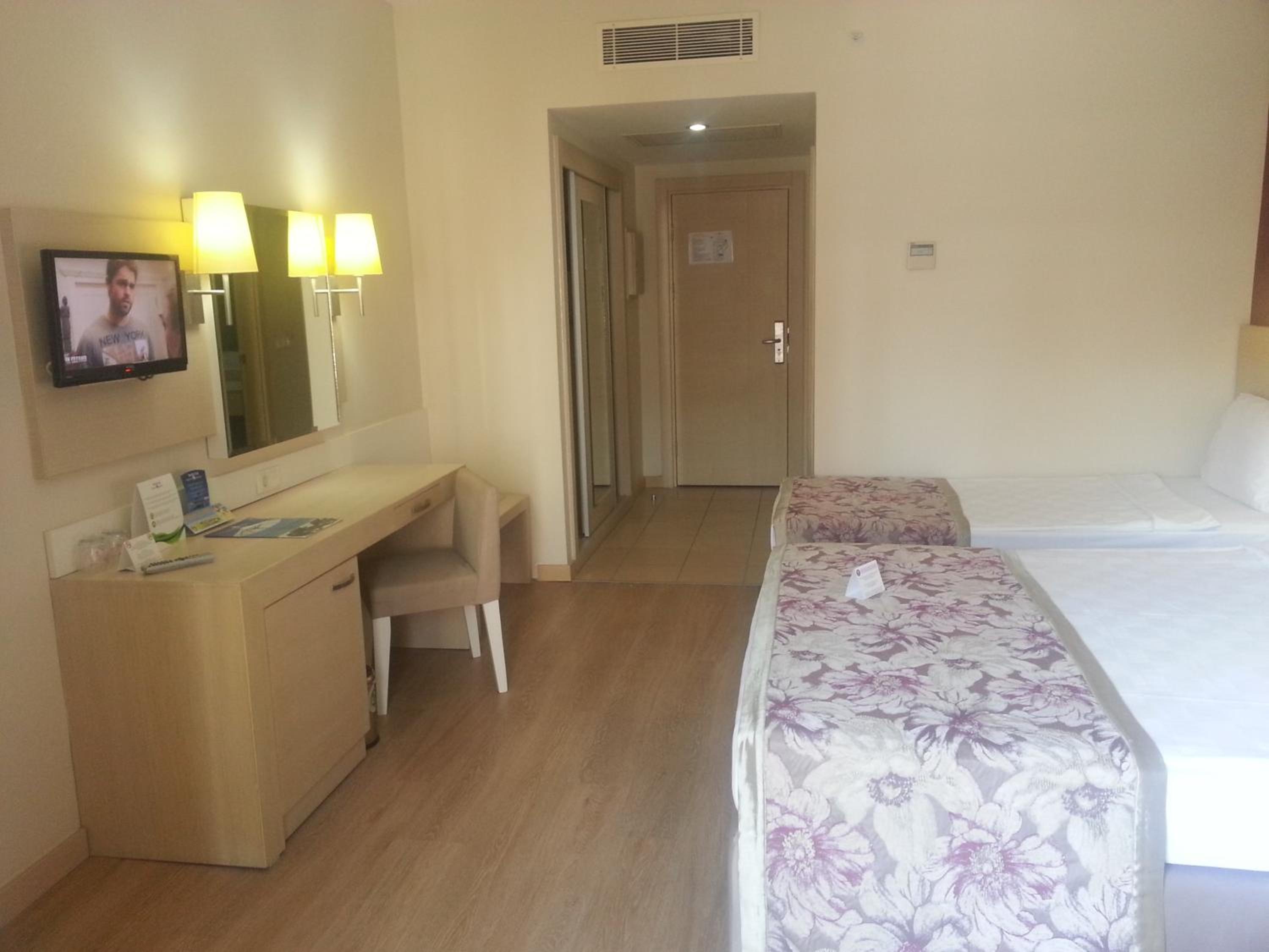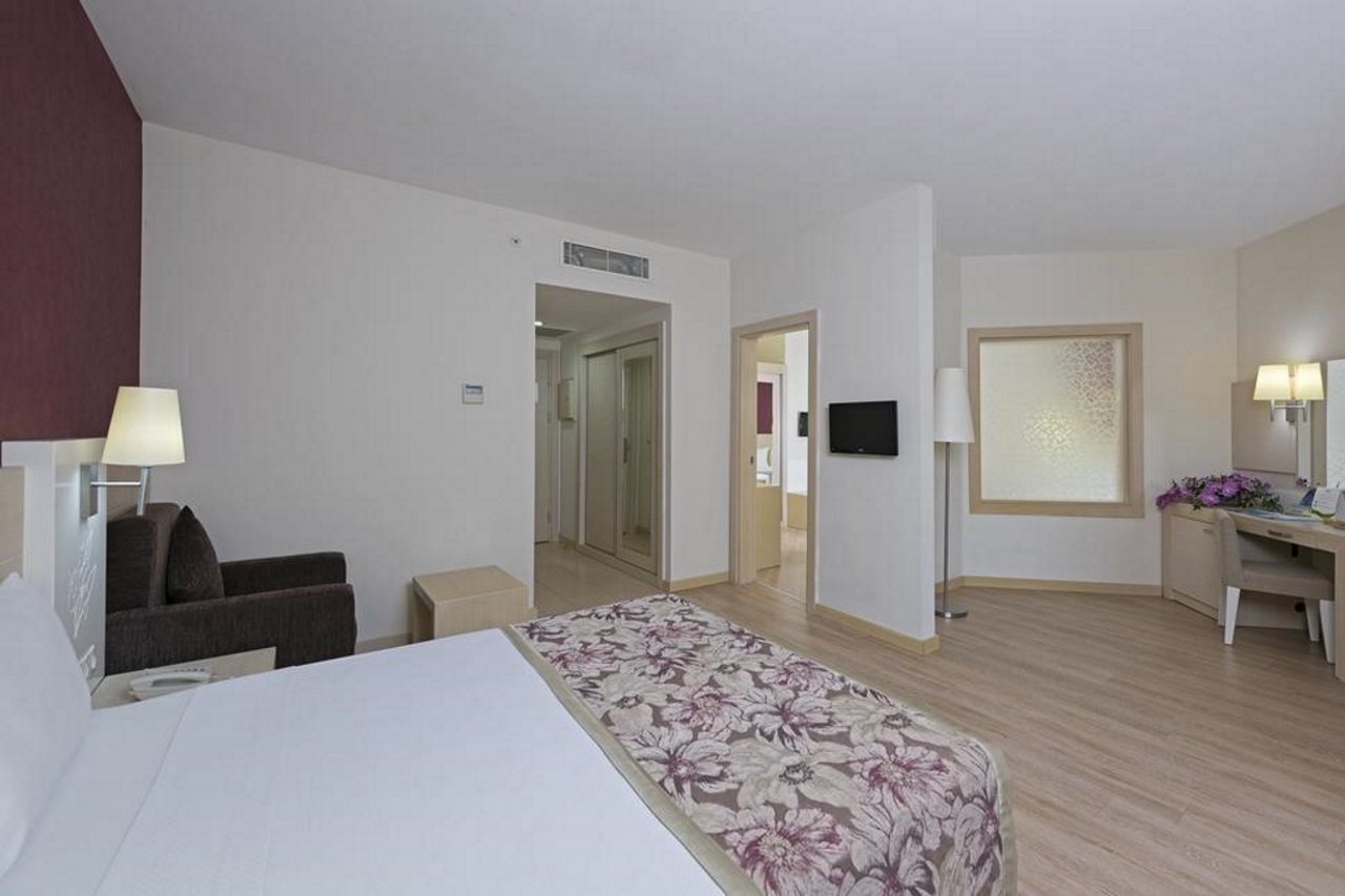Facilities and services include 24 hour reception, restaurants, bars, swimming pool, children's pool, water slides, kids club, playground, playroom (extra charge), meeting rooms, Turkish bath, elevator, sauna, massages (extra charge), fitness center, library, parking (extra charge) and wireless Internet access.Rooms feature central air conditioning, hairdryer, telephone, tea maker, coffee maker, television, mini bar (extra charge), safe (extra charge), balcony or terrace and bathroom. - Please note that some of the above facilities may be closed due to weather / seasonal conditions.- Please note that the air conditioning in the rooms is controlled centrally by the hotel, therefore the air conditioning is only turned on during specific hours during the day which may vary.- In case of choosing the option of "all inclusive":The All Inclusive-concept includes all meals (breakfast, lunch, dinner and snacks) and mealtime drinks such as soft drinks, beer, wine, water and alcoholic drinks, all of local brands. Drinks are served from morning until late evening (approx until 22.-24.00 hrs). Opening times vary between different hotels. In certain hotels the activities program is also includedAddress: Evren Mah. Sahil Cad. Evrenseki Beldesi, 07600, Side, Turkey.