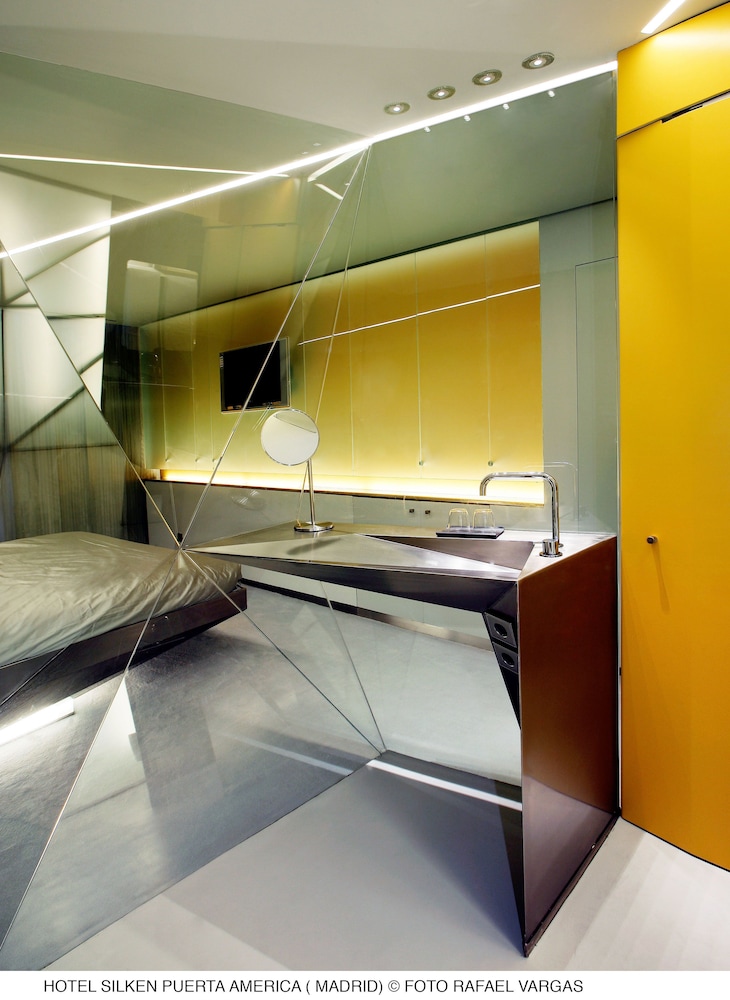 *** The hotel will undergo renovation throughout the premises between 15/07/2017 and 31/08/2017. During this period, the gym will be temporarily relocated within the building, while some of the guest floors, Restaurant Lagrimas Negras and the bars on the 13th floor will be closed. Guests will receive an automatic upgrade to the best available room, in addition to VIP room amenities and a complimentary cocktail or glass of champagne every evening at the newly refurbished Marmo Bar terrace. The pool and sauna will close permanently from 02/07/2017.Silken Puerta America Hotel is a new property situated in the beautiful city of Madrid, in the Salamanca district, full of parks and not far from an important commercial area, with a wide range of deluxe restaurants and jewelries. The building perfectly embodies elegance, charm, functionality and design. At the reception, open 24 hours and always at guests' disposal, guests will find a rent-a-car, bicycle or limousine service, baby-sitting service, tourist information and daily newspapers. Guests will be able to unwind at the many public areas, the bar, the two restaurants, the sauna and at the heated swimming pool or work out at the gym. Moreover, massage and medical services are available upon request.