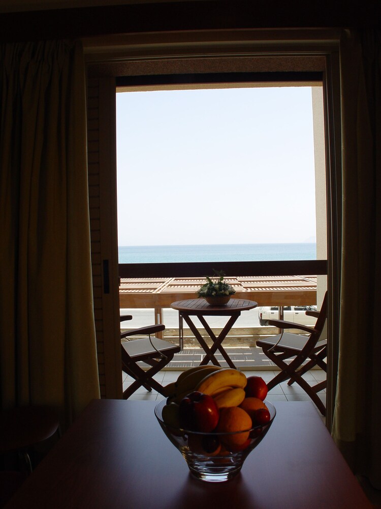 On the most beautiful and quiet part of Sitia we offer 17 luxurious single and double apartments, which provide all the comforts for a pleasant vacation.// All apartments have a magnificent view of the sea and are equipped with air-condition, double beds, full kitchen with all the necessary apparatus, luxury bathrooms, satellite flat screen TV, WIFI access, telephone and balconies, all facing the sea.//The apartments are double rooms studios and 2 room apartments that accommodate 4 people. All rooms are comfortably furnished to a high standard and provide all the comforts for a pleasant stay. Additional facilities include a small gym, sauna, playing area for children, private parking and umbrelass and sunbeds on the beach.//The hotel's swimming pool uses water sterilization no use of chlorine and is also equipped with a jacuzzi.//