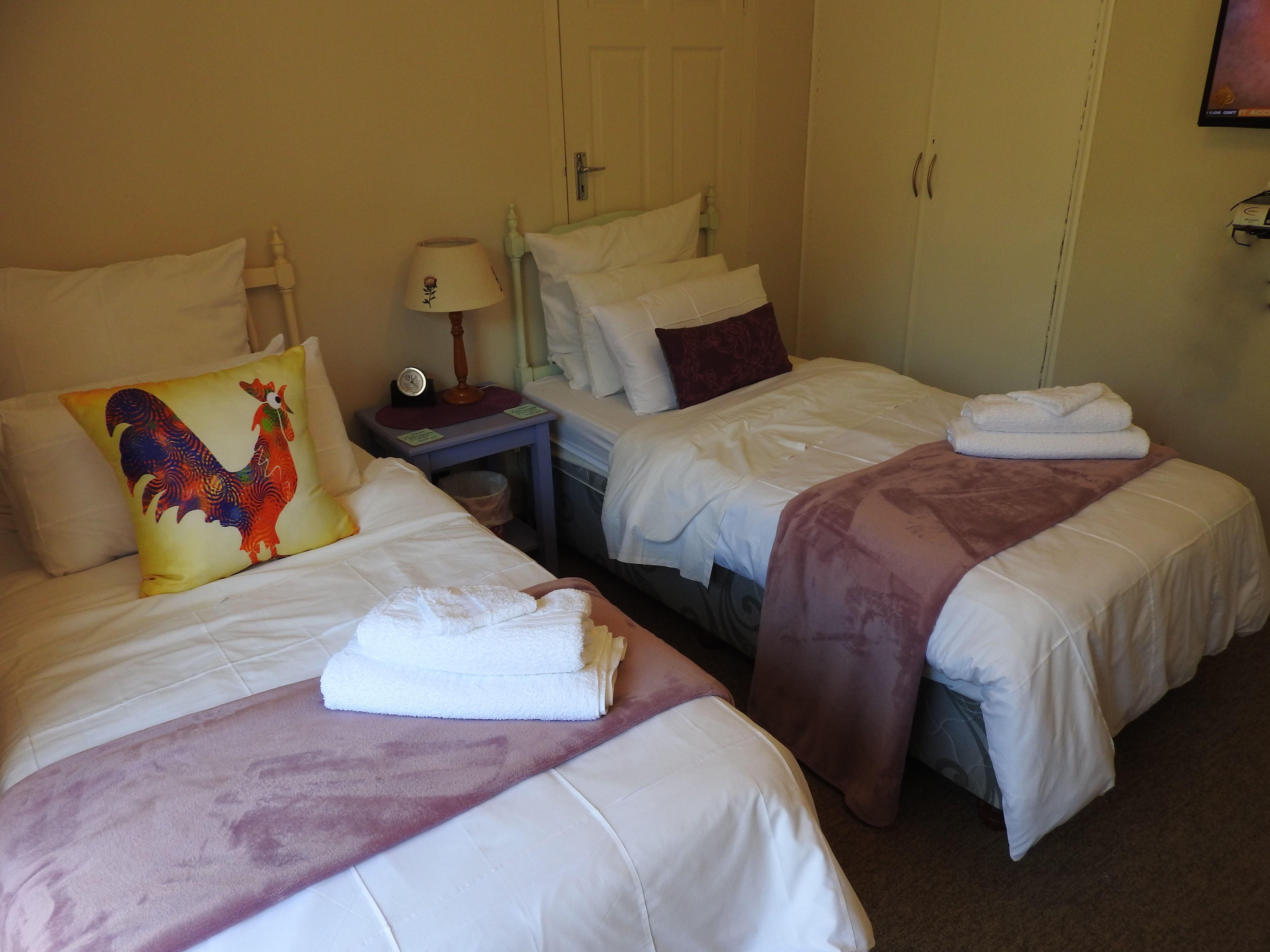SKYBLU is a peaceful garden cottage/apartment. This is a four-roomed cottage with a large bedroom with two 3/4 beds and an en-suite shower. Lounge with flatscreen TV/DSTV. Free wifi. Centrally located. Fully equipped kitchen/dining room. The cottage offers a dishwasher and a washing machine. The cottage also has DStv, Wi-Fi, air-conditioning and a heater. ULTRAVIOLET is a peaceful garden cottage/apartment. This is a three-roomed cottage with a bedroom with two single beds. Flatscreen TV/DSTV in the bedroom wihich opens onto the garden.There is a kitchen/din