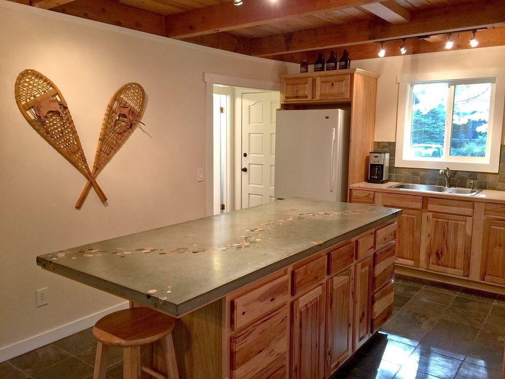 Snowline Cabin #66 - The Sisters Mountain Cabin Your family will have a delightful time staying in this newly restyled 2-story, 3+ bedroom, cabin with 1 3/4-baths. The first floor features a spacious open floor plan living, dining, and kitchen area that includes a dishwasher, a custom island counter/breakfast bar, a freestanding wood stove (firewood provided), and a DVD/monitor, plus one full bath with a laundry cubby including a washer and dryer, and a second 3/4-bath. Ascending the staircase to the second floor reveals three generous size bedrooms, including one bedroom with 1-king size