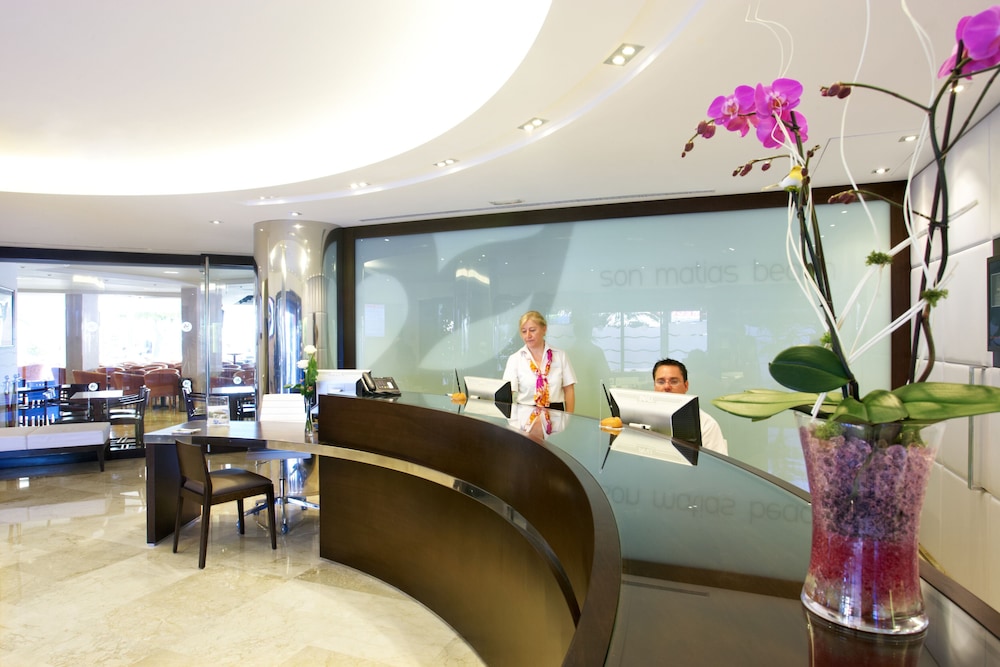 This hotel is located in the centre of Palmanova. It enjoys an enviable position, right by the sandy beach from which the hotel gets its name, and with direct access to it. The city of Palma de Mallorca is only 12 km away and it is just some 15 km to Palma de Mallorca Airport.This beach hotel is open all year round and comprises a total of 135 rooms over 9 floors with 2 lifts. This establishment operates an adults-only policy and thus does not accept bookings for children under 16 years old. Facilities on offer to guests at this air-conditioned establishment include a lobby area with a 24h reception and 24h check-in/check out service, a currency exchange facility, a lounge cafe, bar snack in pool side, a bar, a restaurant and Internet access with charge apply. Guests may also take advantage of the room and laundry services and there is parking for those arriving by car.All rooms come with a fully fitted bathroom with a shower/bathtub and a hairdryer, a direct dial telephone, centrally regulated air conditioning and heating, a radio (free charge) and satellite TV ( charges apply), a safe (charges apply), a fridge (charges apply) and tea and coffee making facilities. Furthermore, an ironing set can be arrange at reception for refundable deposit. All rooms have a balcony with panoramic views of the Mediterranean and two singles beds.There is an open air swimming pool with sun loungers, parasols and a poolside snack bar as well as an extensive programme of both daytime and evening entertainment. Guests may also relax in the open air heated whirpool or, for an additional fee, try their hand at water skiing, jet skiing, motor boating, diving, windsurfing, sailing, catamaran sailing, billiards or mini golf on the local beach. It is also possible to play a game of table tennis, beach volleyball or bocce.The restaurant offers a self-service buffet.