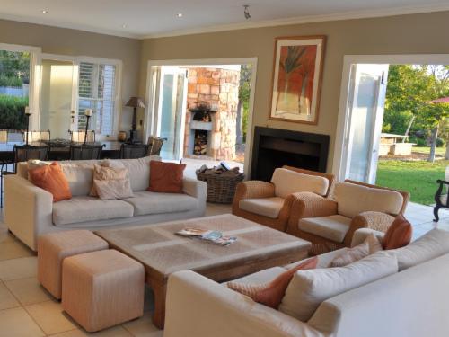 Luxury farm-stay accommodation in the Villa. Great country restaurant & art gallery; and an accessible venue space - South Hill Vineyards offers a unique, relaxed setting all year round. We invite you to share in superb wine, good food and a great atmosphere.6 Bedroom Villa with open plan living/ dining & kitchen area overlooking pool, surrounding lawns & vineyards. Indoor fireplace for chilly months & DStv in living area. Braai area & pizza oven with outside table for al fresco dining & spectacular sunsets. The Villa is available on an Exclusive Full Use. Rates shown are self-cat