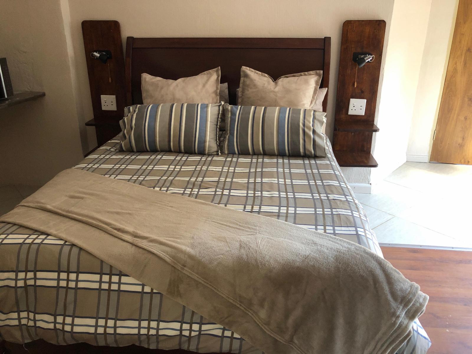 The self-catering room has a private bathroom and is furnished with a queen-size bed, a kitchenette, fridge, and a microwave. For your entertainment, the room has a TV with full DStv channels and unlimited Fibre Wi-Fi.