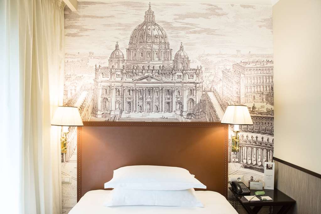 Facilities and services include 24 hr reception, parking (extra charge), elevator, wireless Internet access, laundry service (extra charge), dry cleaning (extra charge), business center, room service (extra charge), restaurant, bar and meeting room. Rooms feature wireless Internet access, desk, minibar (extra charge), TV, telephone, safe, central air conditioning, bathroom and hairdryer. Superior suite also feature coffee and tea maker. Junior suite also feature living area. Suite also feature separate living room and sofa bed. Triple room have no desk. Suite: Sofa Bed in the living room for the 3rd/4th person**Please note that the air conditioning in the rooms is controlled centrally by the hotel, therefore the air conditioning is only turned on during specific hours during the day which may vary.Address: Via della Stazione di San Pietro, 14, 00165 Rome, Italy.