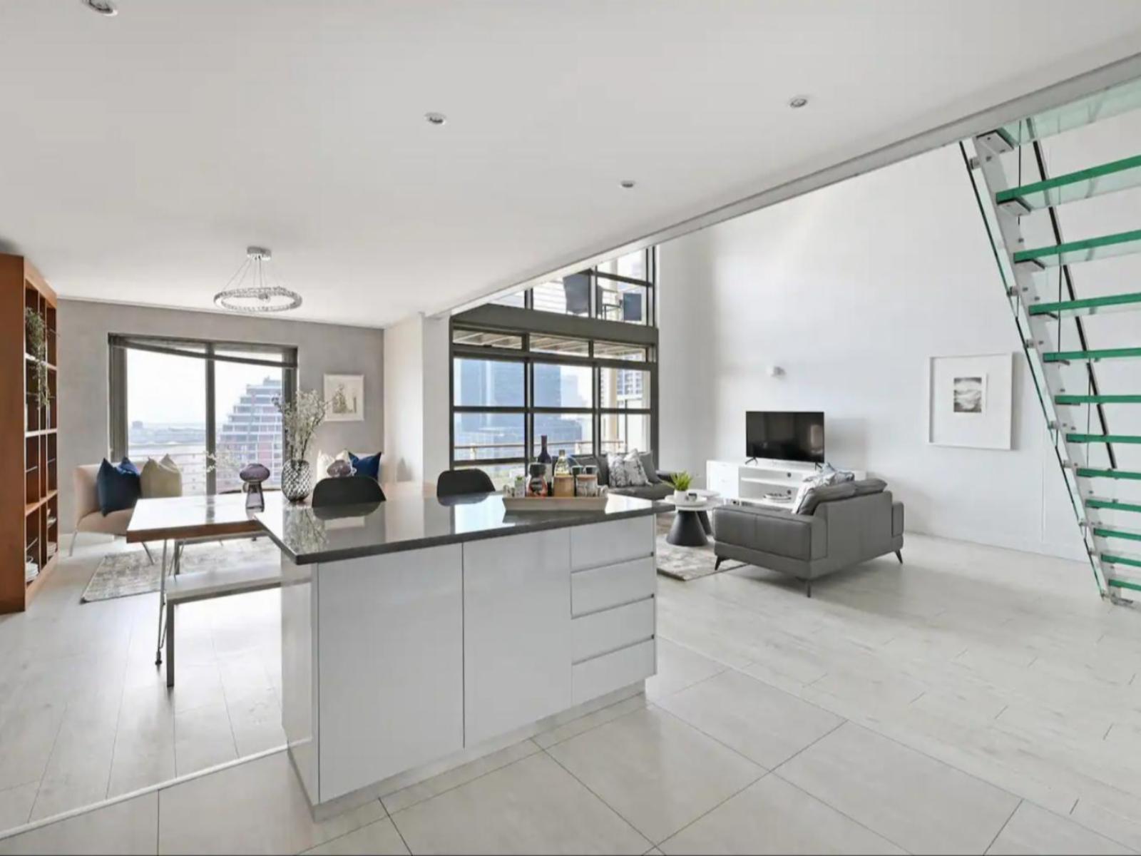 Stay Amazing PMC - Soho is a stylish loft apartment for 6 people with beautiful views of the Cape Town city skyline and is beautifully furnished with all the amenities for a home away from home experience.The loft area features 1 open-plan sleeping area with a double bed with an en-suite shower, opening to the balcony. The second loft room offers privacy curtains, a double bed and a full en-suite bathroom. Located on the ground floor, the third room is furnished with a double bed and has an en-suite shower.Air-conditioned throughout the open-plan liv
